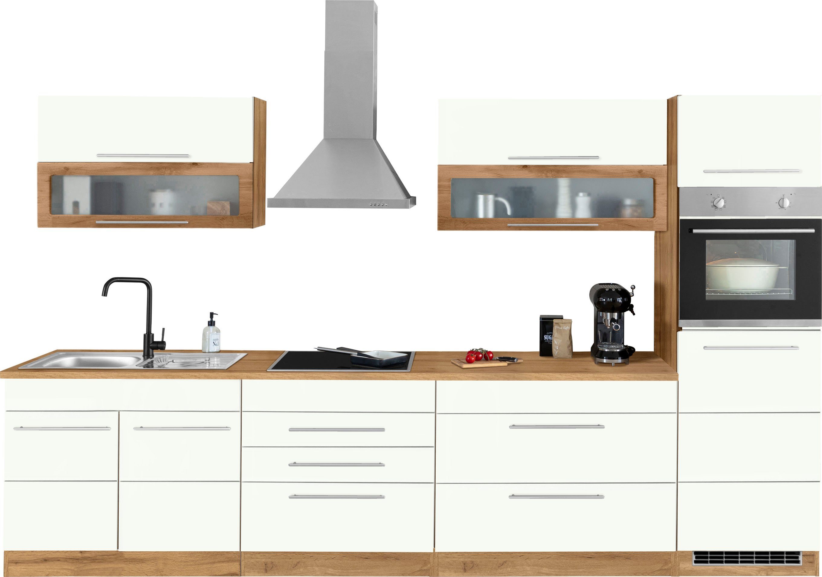 Ausstattung | Seitenverkehrt stellbar inkl. Edelstahl-Auflagespüle, mit Abtropffläche weitere Informationen zu Elektrogeräten: siehe Спецификации товара (на немецком) |