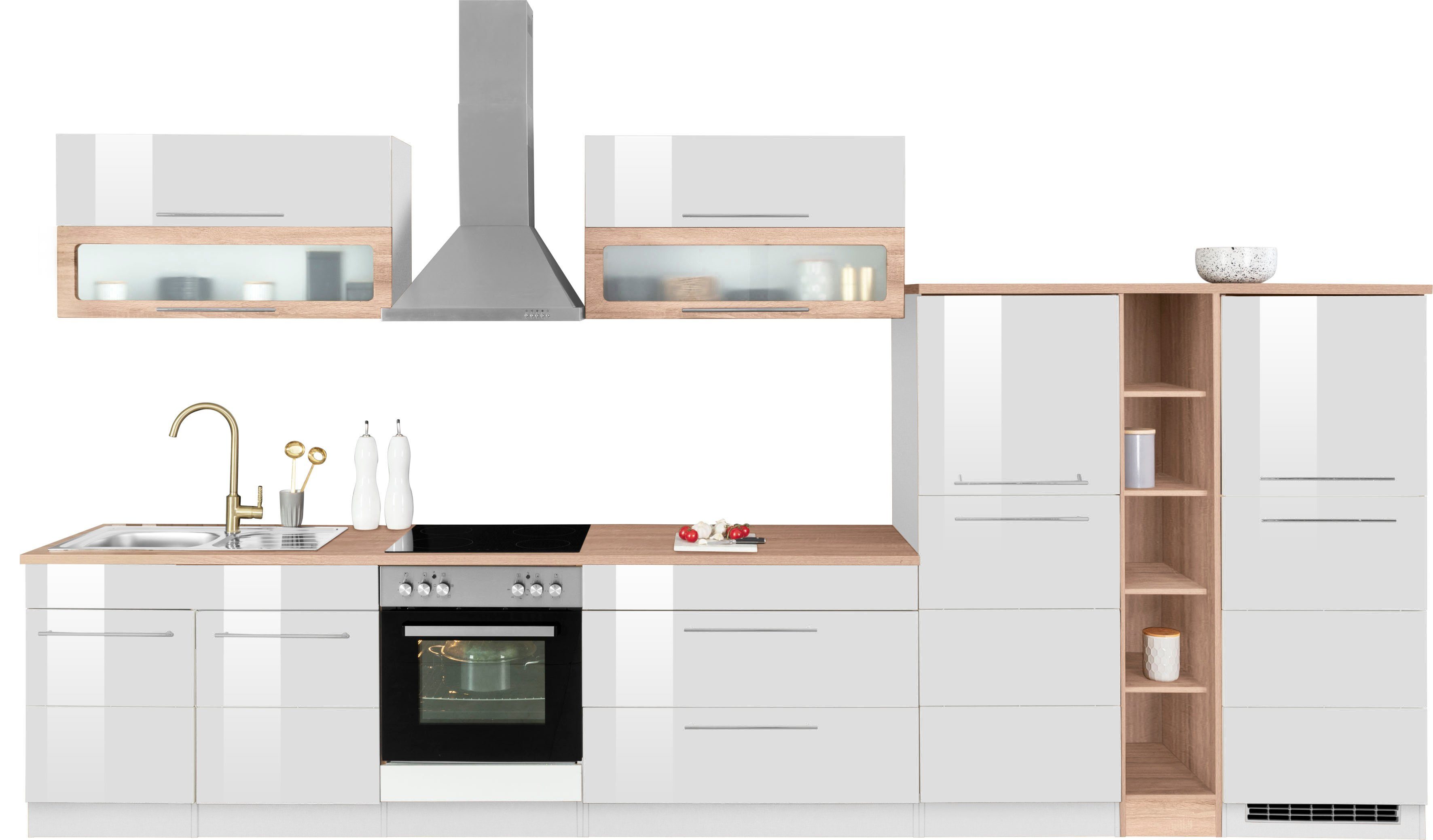 Ausstattung | Seitenverkehrt stellbar inkl. Edelstahl-Auflagespüle, mit Abtropffläche weitere Informationen zu Elektrogeräten: siehe Спецификации товара (на немецком) |
