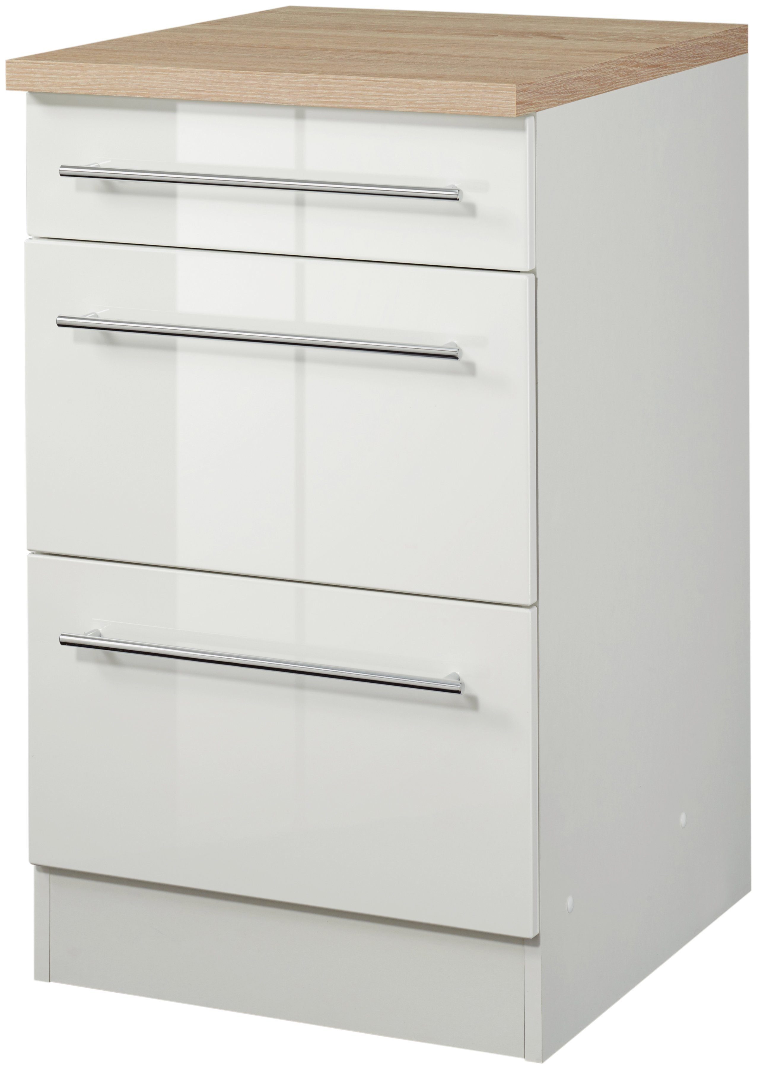 Mit dem Unterschrank »KS-Wien« von KOCHSTATION bekommst du Design und Funktionalität in einem. Der Schrank wurde aus einer stabilen Spanplatte gebaut und ist damit beständig gegen Luftfeuchtigkeit. Die Griffe aus Metall sind stabil und nutzen sich daher nicht so schnell ab. Das Produkt wurde in Deutschland gefertigt und steht daher für hohe Qualitätsstandards. Der Unterschrank lässt sich dank der dazugehörigen Anleitung unkompliziert montieren.