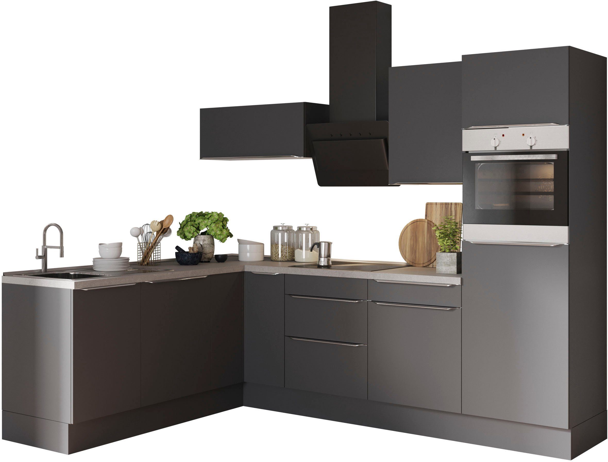 Ausstattung | Durchgehende Arbeitsplatte Schubkästen und Türen mit Soft-Close-Funktion Stabile Metallauszüge Wandabschlussleiste inkl. Edelstahl-Einbauspüle, mit Abtropffläche |
