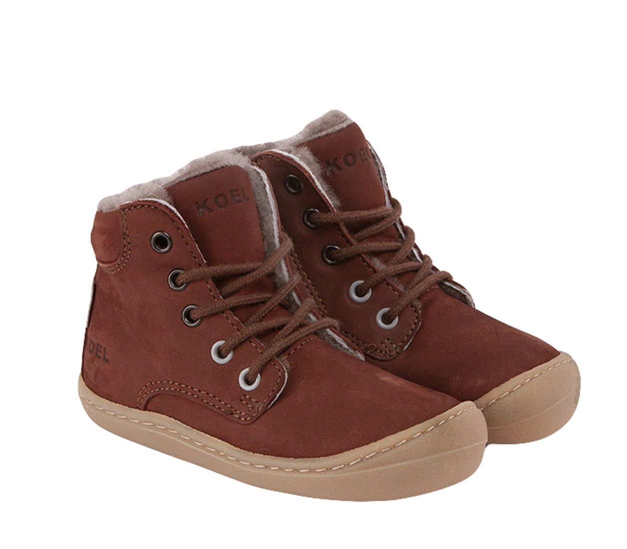 Charakteristisch für Koel4Kids-Schuhe sind das Logo auf der Sohle und das Finish mit Bändern.