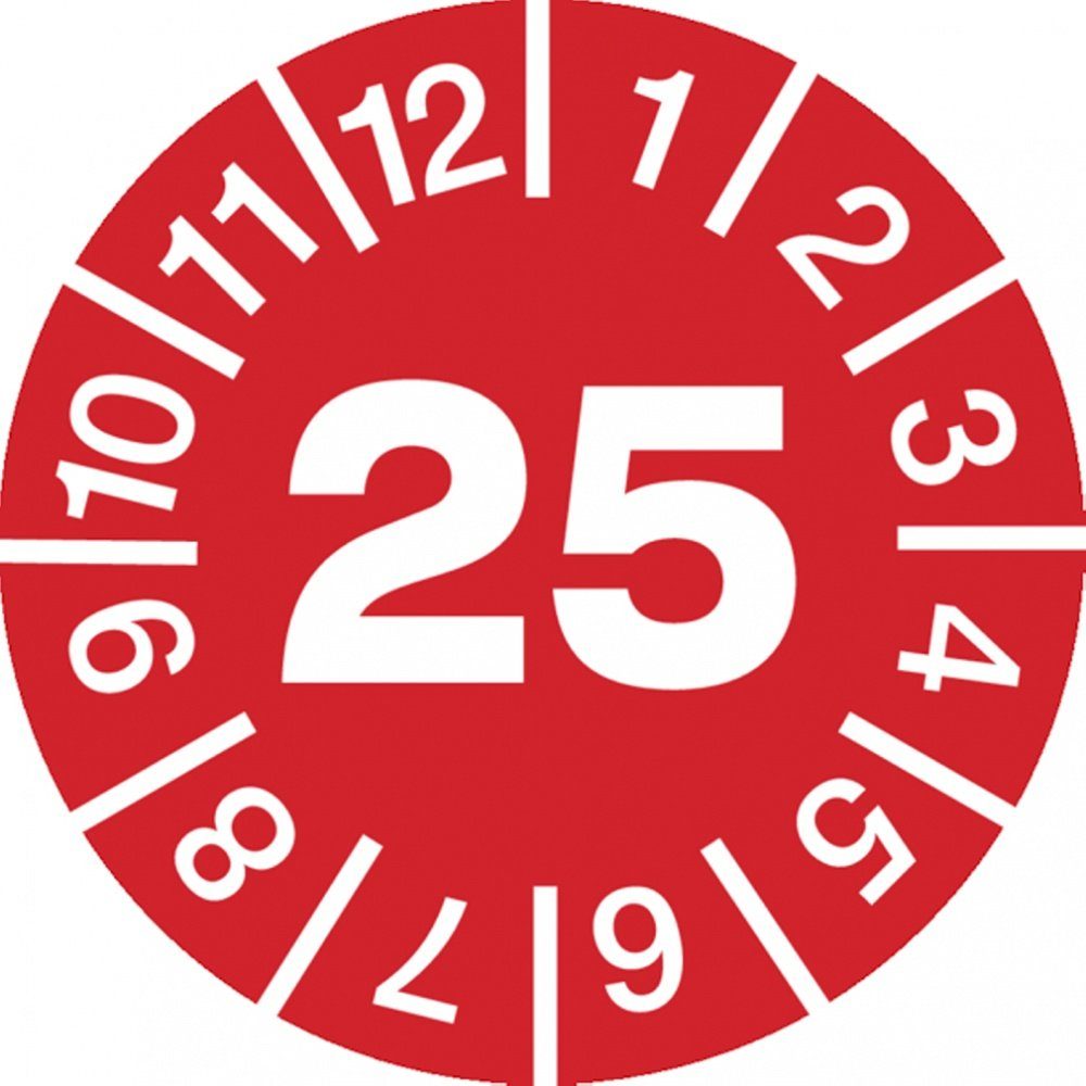 Hinweisschild JahresprüfPlak., Jahresfarben, Folie, Ø30mm, Bogen = 10 Plak.