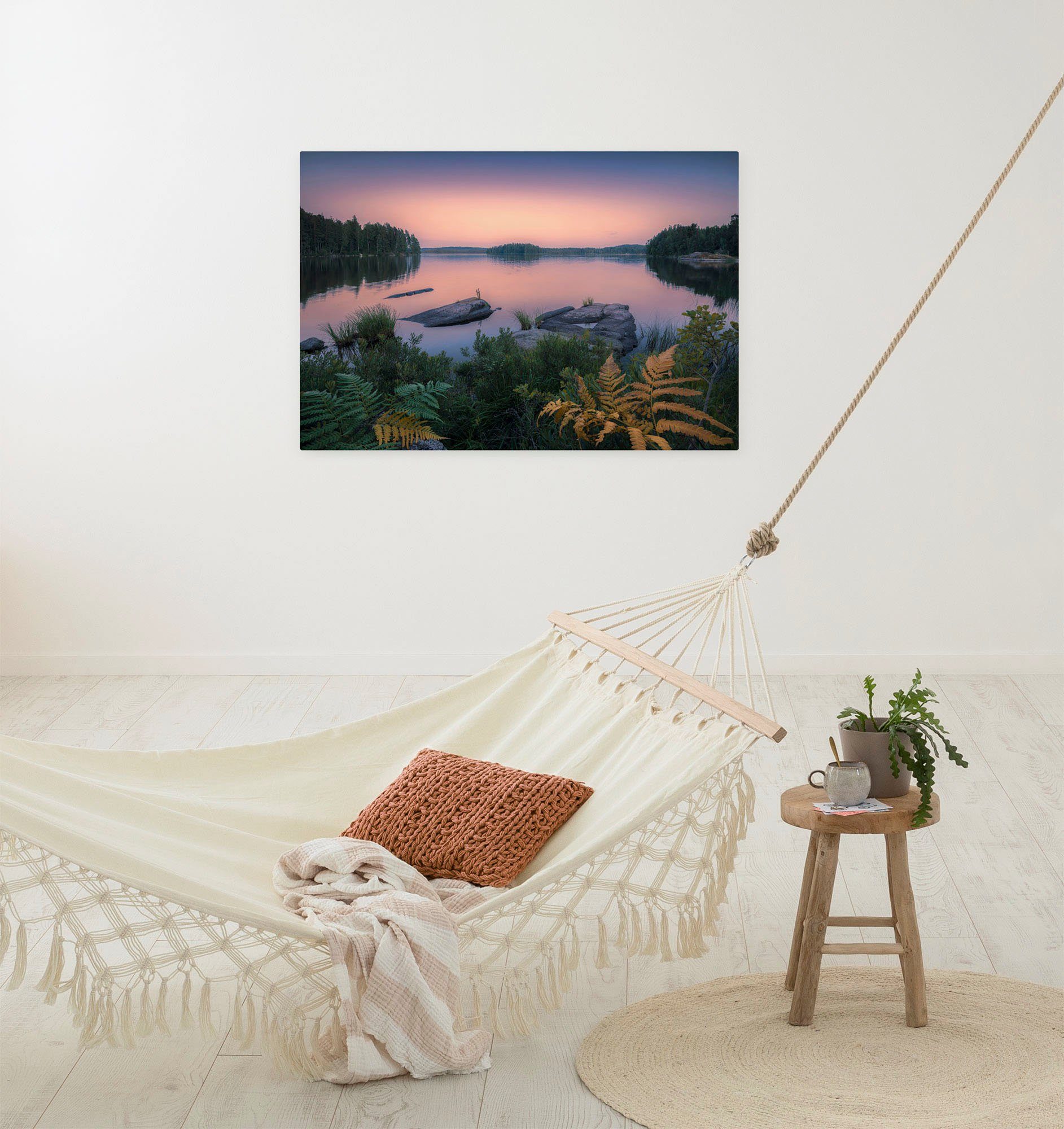 Deutsches Qualitätsvlies (155 g/m²) gespannt auf 2 cm starken, hochwertigem Kiefern Massivholz. Stabiler Galerie-Keilrahmen, geruchsfrei, glatt, FSC®-zertifiziert. Jedes Keilrahmenbild wird bei Komar individuell in Handarbeit angefertigt. MADE IN GERMANY.