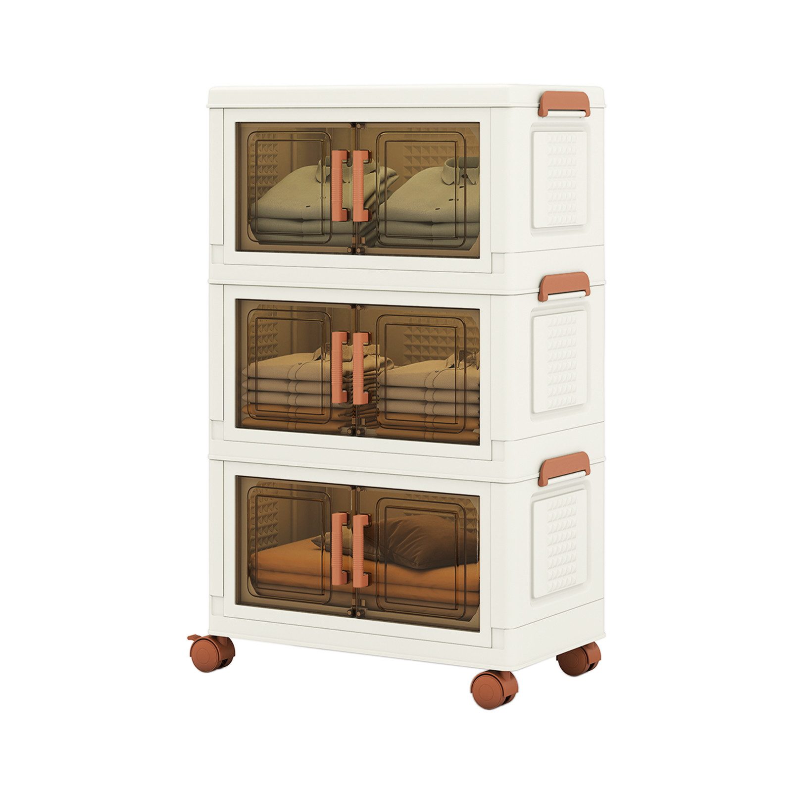 Verwandeln Sie Ihre Organisation mit den stapelbaren Aufbewahrungsbehältern. Dank des cleveren, faltbaren Designs ist der Behälter einfach aufzustellen und bei Nichtgebrauch kinderleicht zu verstauen. Dank der vier Universalrollen lässt er sich mühelos bewegen. Die transparenten Türen mit sicheren Magnetverschlüssen sorgen dafür, dass Ihre Gegenstände leicht zugänglich sind. Diese vielseitige Organisationslösung eignet sich perfekt für eine Vielzahl von Umgebungen – von geschäftigen Büroumgebungen bis hin zu kreativen Ateliers. Die aus robustem Kunststoff gefertigten Aufbewahrungsbehälter sind langlebig und sorgen für Ordnung und ein ansprechendes Aussehen.