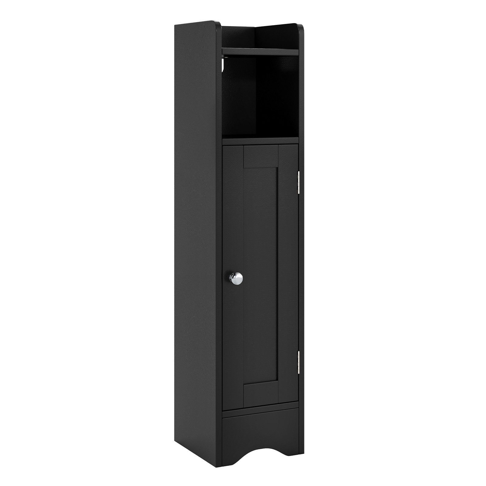 Machen Sie tägliche Notwendigkeiten einfach zugänglich mit unserem Badezimmerschrank. Dieser 5-stufige Schrank kombiniert Eleganz und Funktionalität, bietet viel Platz und Vielseitigkeit in einem kompakten Design. Die breite Ablagefläche mit erhöhtem Rand bietet einen sicheren Platz für Gegenstände, während das magnetische Türfach mit Griff einfachen Zugang zu häufig genutzten Dingen ermöglicht. Außerdem gibt es 2 verstellbare Regale mit 3-Stufen-Verstellung, um Ihre Aufbewahrung nach Belieben anzupassen. Zusätzlich passt dieser schmale Toilettenpapierhalter mühelos in kleine Ecken, ideal für Badezimmer, Flure oder Wohnzimmer mit begrenztem Platz.