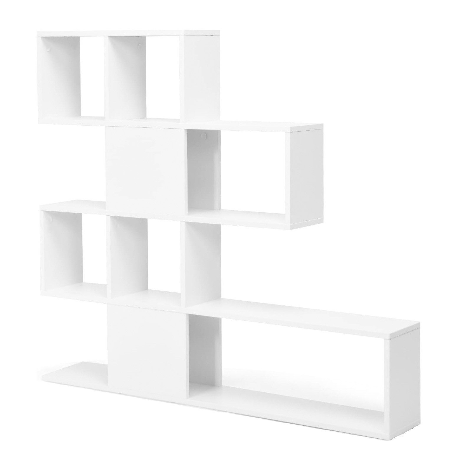 Wenn Sie auf der Suche nach einem Bücherregal mit einzigartigem Design sind, ist unser Produkt die beste Wahl für Sie. Dieses zweifarbige Regal hat eine maximale Tragfähigkeit von 20 kg pro Regalboden, wodurch es praktisch und langlebig ist. Der breite Sockel und die rutschfesten Füße machen ihn nicht nur stabiler, sondern schützen auch den Boden vor Beschädigungen. Das offene Regal mit vier Etagen sortiert Ihre verschiedenen Gegenstände und sorgt für Ordnung im Zimmer. Es kann als Regal, Ausstellungsfläche oder Bücherregal verwendet werden. Außerdem sorgt die Kippsicherung auf der Rückseite dafür, dass Sie und Ihre Familie voreinander geschützt sind. Dieses stilvolle und elegante Regal wird das Highlight in Ihrem Wohn-, Schlaf- oder Arbeitszimmer sein.