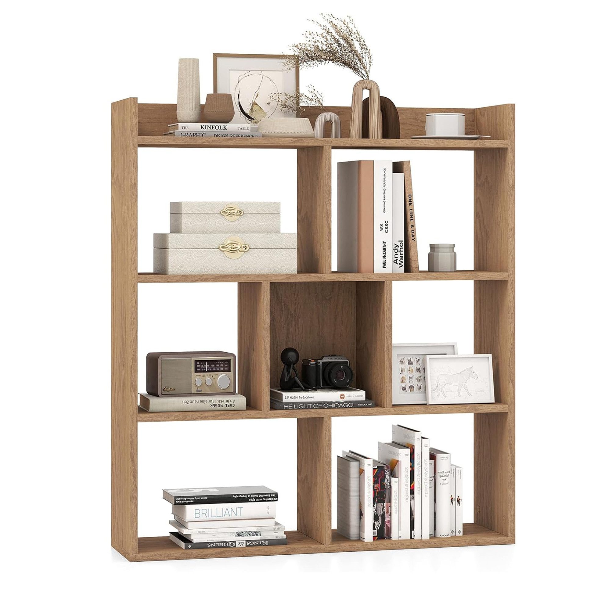 Erhöhen Sie Ihren Wohnkomfort mit der ultimativen Lösung für Organisation und Stil! Das 3-stufige Bücherregal verfügt über 7 Fächer und eine geräumige Oberseite, die problemlos Bücher, Pflanzen, geliebte Dekorstücke und mehr in Reichweite halten. Gefertigt aus dickem Material, ist jedes Fach langlebig und hält dem hektischen Alltag stand. Zudem ist es mit Sicherheitsmerkmalen wie erhöhten Kanten, Anti-Kipp-Vorrichtungen und Anti-Rutsch-Fußpads ausgestattet. Das einfache Stil-Bücherregal integriert sich nahtlos in Ihr Wohnzimmer, Schlafzimmer usw. und passt sowohl zu modernen als auch zu traditionellen Einrichtungen.