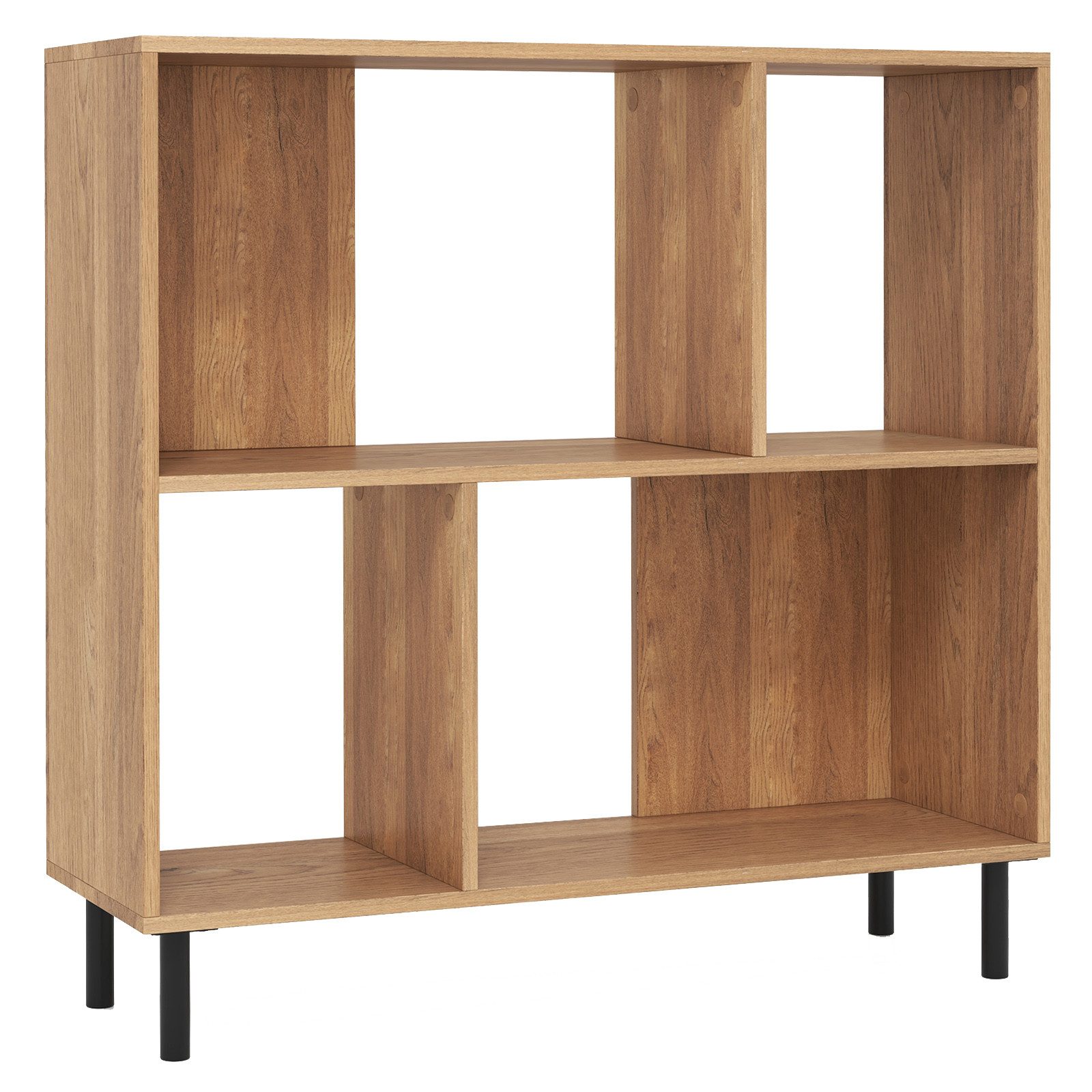 Dieses 2-stufige Regal ist elegant gestaltet und bietet eine Vielzahl von Funktionen. Es verfügt über eine große obere Fläche, um Bilderrahmen oder Dekorationsgegenstände auszustellen. Die 4 Aufbewahrungsfächer erleichtern die Sortierung und Aufbewahrung von verschiedenen Gegenständen, ideal für Bücher und Dokumente. Das Regal besteht aus hochwertigen Spanplatten mit robusten Metallfüßen, die Stabilität und Langlebigkeit garantieren. Zudem ist es mit zwei Kipp-Sicherungen ausgestattet, um die Sicherheit zu erhöhen.