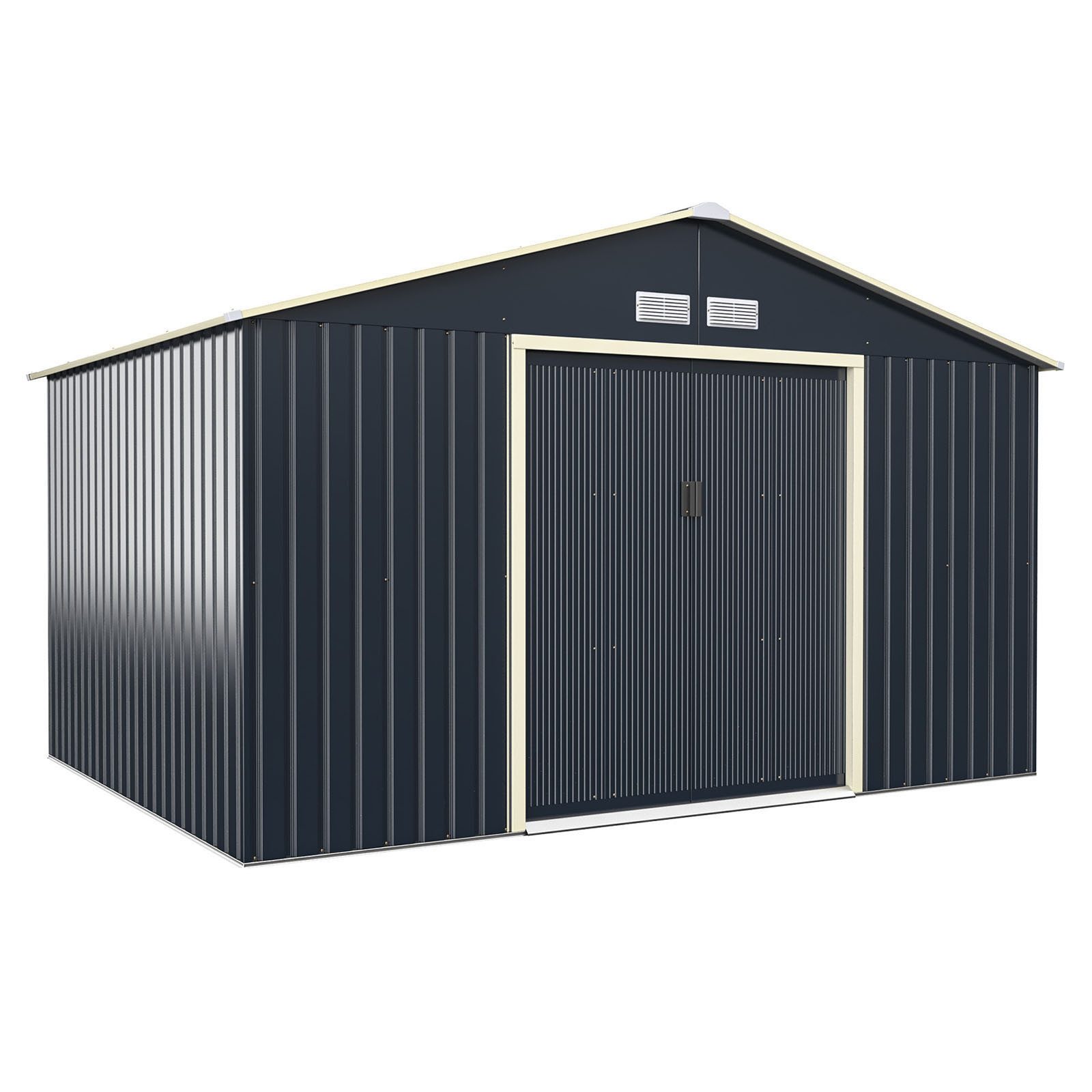 Wenn Sie sich Sorgen machen, dass Sie keinen Platz für Ihre Fahrräder, Unkrautvernichter usw. haben, ist unser Gerätehaus die perfekte Wahl für Sie. Dieser Metallschrank ist ideal für den Einsatz im Garten oder auf dem Bauernhof. Die behandelte Oberfläche ist witterungsbeständig, sehr wetterfest und rostbeständig. Die vier Lüftungsöffnungen an der Vorder- und Rückseite des Hauses erleichtern die Luftzirkulation, so dass der Innenraum stets trocken und geruchsfrei bleibt. Es ist erwähnenswert, dass der Griff der Schiebetür ein Loch hat, um bei Bedarf ein adaptives Schloss zu installieren (nicht enthalten). Leicht zu öffnen und zu schließen, während Ihr Hab und Gut sicher aufbewahrt wird.