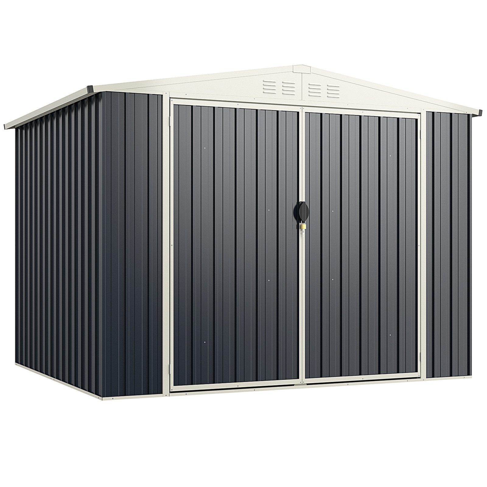 Entdecken Sie das perfekte Gartenhaus zur Organisation Ihres Außenbereiches! Mit den Maßen 246 x 193 x 180 cm und einem Volumen von 7,5 m³, ist dieses aus robustem feuerverzinktem Stahl gefertigte Gerätehaus wetterbeständig und rostfrei. Sein geneigtes Dach verhindert Wasseransammlungen und die abschließbaren Türen schützen Ihre Gegenstände. Stabil verankerbar auf eine Betonbasis, lässt es sich einfach montieren und ist äußerst vielseitig, ideal als Gerätehütte oder Tierunterkunft. Vereinfachen Sie die Gartenarbeit und sichern Sie Ihre Ausrüstung stilvoll und effizient.