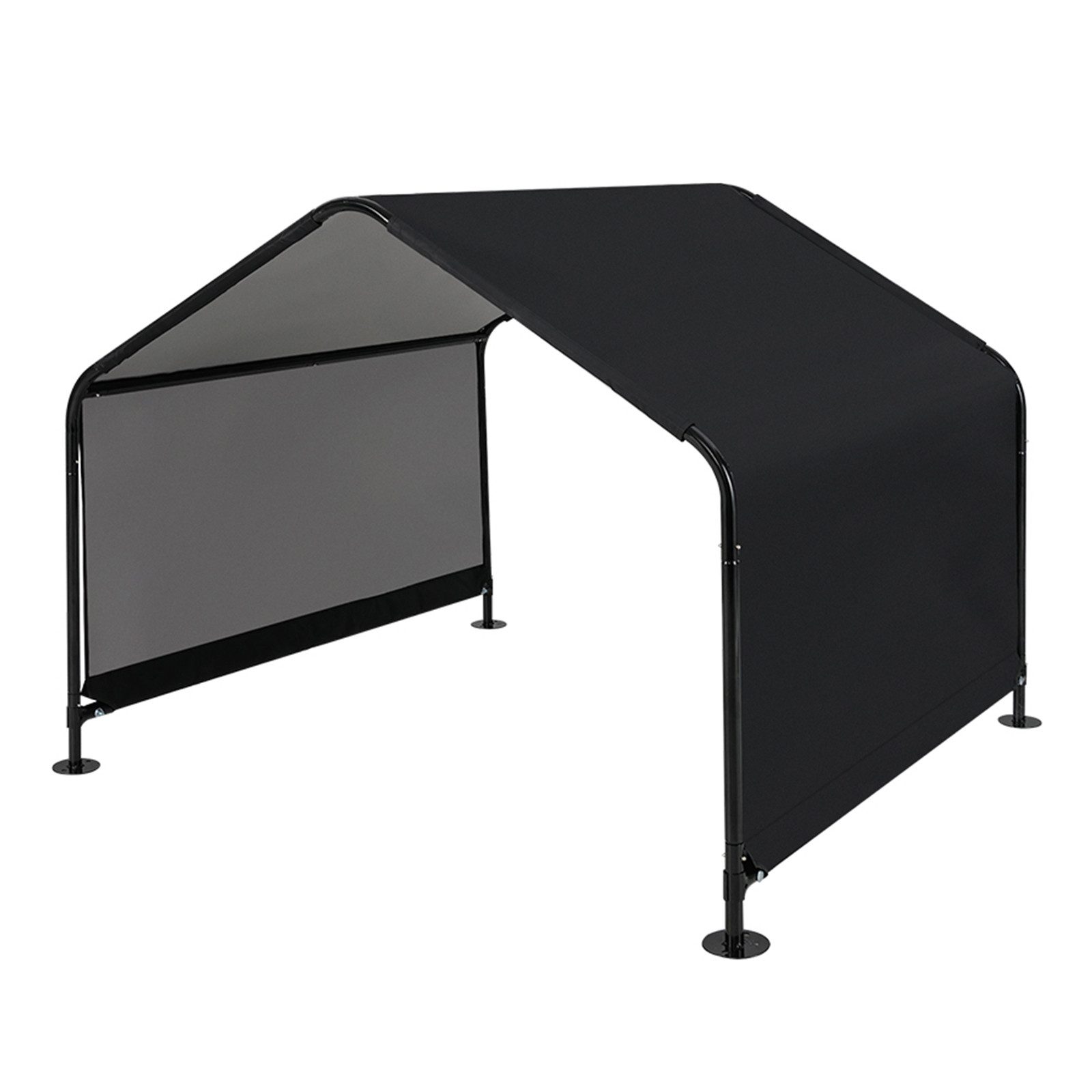 Suchen Sie einen Platz, um Ihre Haustiere im Freien ausruhen zu lassen? Dieses Haustierzelt verfügt über eine Auswahl an dicken Planen mit einer wasserfesten Innenbeschichtung. Darüber hinaus verfügt es über eine mit Kunststoff beschichtete Metallkonstruktion, um die Eignung für den Außeneinsatz zu gewährleisten. Die Plane wird direkt am Metallrohr befestigt, was die Wahrscheinlichkeit verringert, dass sie sich löst oder bei Wind umkippt, und Heringe werden für zusätzliche Stabilität mitgeliefert. Das geneigte Dachdesign beschleunigt das Ablaufen von Regenwasser und hält das Innere trocken und kühl. Dieses Zelt ist geeignet für Innenhöfe oder Gärten, um die Outdoor-Ruhebedürfnisse Ihres Haustiers zu erfüllen, und kann bequem bei Regen oder Sonnenschein genutzt werden.