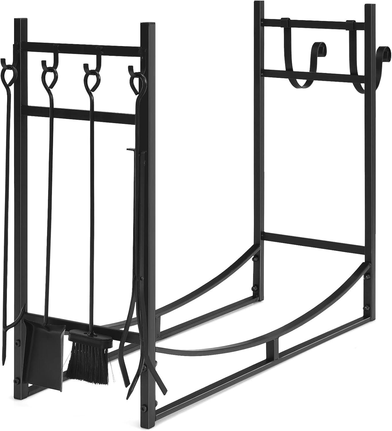 Das Brennholzregal kann viel Brennholz lagern und hält das Holz in einem bestimmten Abstand vom Boden. Es sorgt für eine bessere Luftzirkulation und hält das Brennholz trocken, sodass es leichter zu verbrennen ist. Dieses Kaminholzregal ist mit einer Schaufel, einer Bürste, einer Zange und einem Schürhaken ausgestattet, damit Sie die Feuerstelle reinigen, das Brennholz bewegen oder einen Funkenschutz auf sichere Weise anheben können. Dieses schwarze Kaminwerkzeugset besteht aus massivem Metall mit Pulverbeschichtung für starke Hochtemperaturbeständigkeit, Haltbarkeit und Tragfähigkeit. Es hält Brennholz für die Feuerstelle im Hinterhof, Feuerstellen im Freien, und für das Camping im Freien.