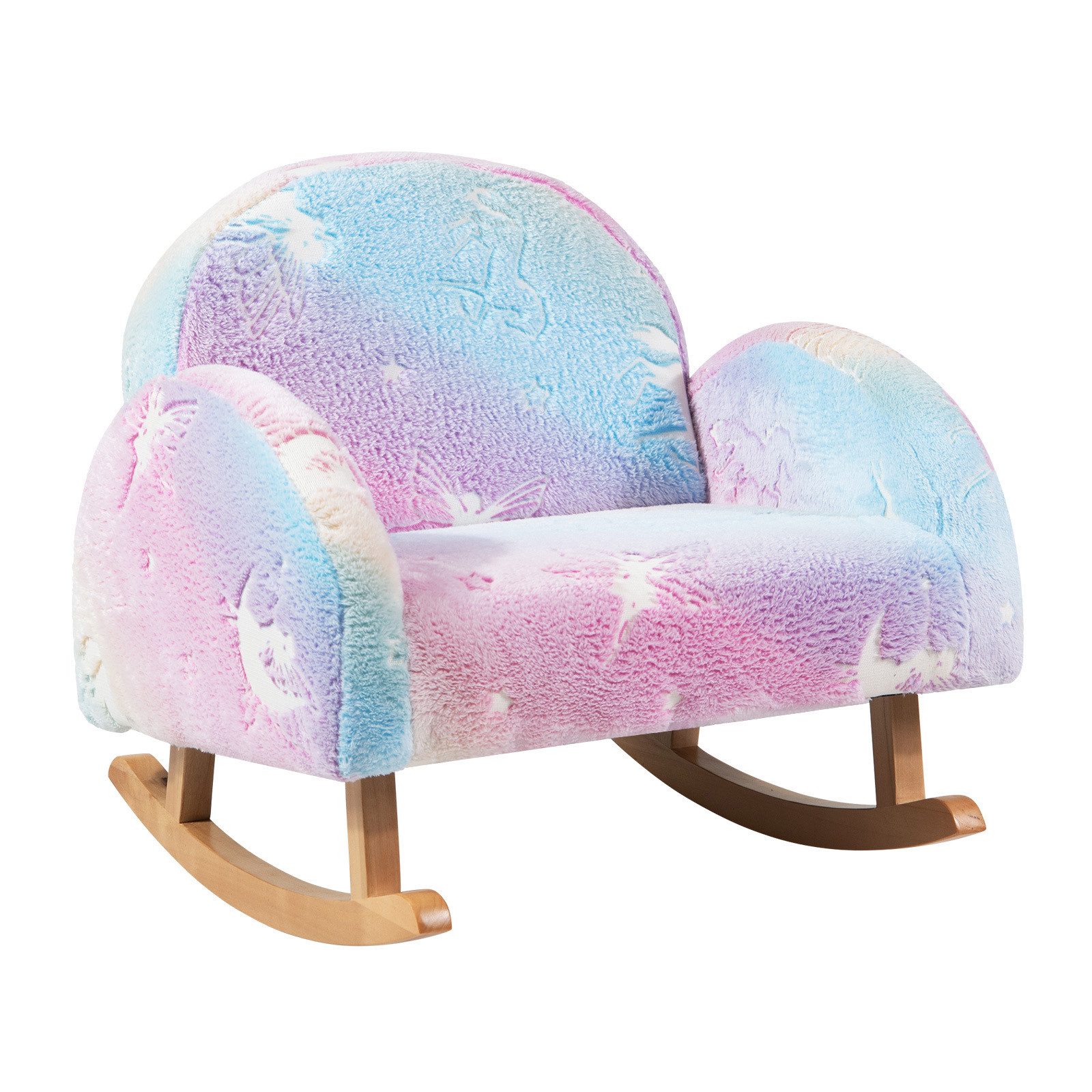 Dieser gepolsterte Kindersessel erfüllt verschiedene Bedürfnisse vom niedlichen Look bis zum entspannenden Schaukeln. Dieser Polstersessel für Kinder ist ergonomisch geformt und mit weichem Schaumstoff gefüllt, der bequemen Halt bietet und dem Kind hilft, eine gute Sitzhaltung zu entwickeln. Außerdem hat er eine Schaukelfunktion für zusätzlichen Spaß für Kinder. Solide Materialien und raffinierte Handwerkskunst verleihen diesem langlebigen Kinderschaukelstuhl eine starke Belastbarkeit von 50 kg. Außerdem sieht er niedlich aus und ist auch eine gute Geschenkoption.
