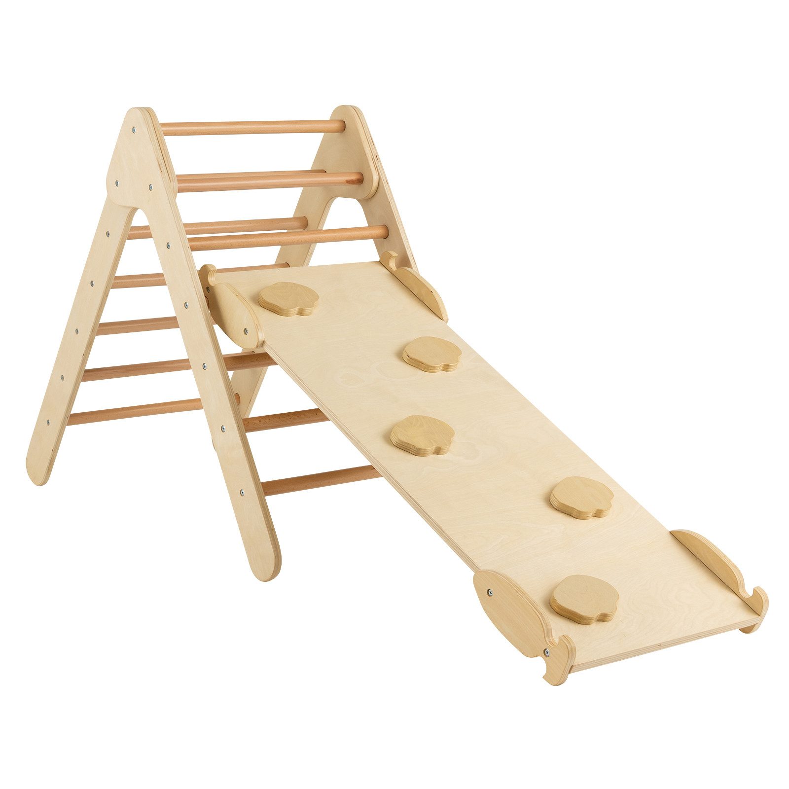 Die dreieckige Kletterleiter mit Wenderampe animiert das Baby zum mutigen Klettern und Rutschen. Es kann auch die Freude, das Selbstvertrauen, die Kreativität und die Körperkraft der Kinder beim Klettern oder Rutschen steigern. Um mehr Sicherheit zu gewährleisten, haben wir sie speziell mit versenkten Schrauben, einer gratfreien Oberfläche und polierten Ecken konstruiert. ASTM- und CPSIA-Zertifizierungen sorgen für mehr Sicherheit. Außerdem schafft dieses Set mit BPA-freiem Buchenholz und Birkenholz einen sicheren und harmlosen Spielplatz für Ihre Kinder. Kletterstäbe und Buchenholzleisten ermöglichen Kleinkindern den Kletterspaß besser zu genießen. Unser Kletter- und Rutschspielzeug-Set eignet sich für Wohnzimmer, Kinderzimmer, Kindergarten, Freizeitpark und mehr. So können Kinder spielen, wo sie wollen.