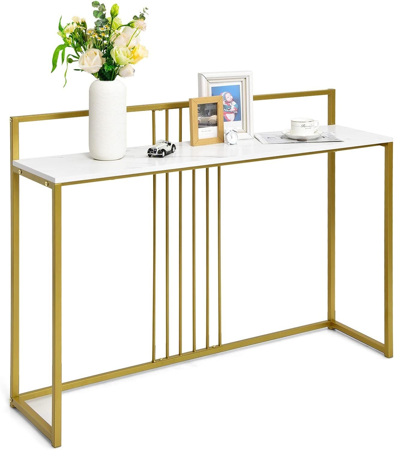 Wenn Sie einen Tisch wünschen, der nicht nur einige Gegenstände stellen kann, sondern auch als Dekoration verwendet werden kann, müssen Sie unseren Konsolentisch in Betracht ziehen. Dieser Konsolentisch besteht aus MDF und Eisenrahmen. Er ist nicht nur schön und modisch, sondern auch eng verbunden sowie sehr stabil und langlebig. Die Tischplatte kann ein maximales Gewicht von 20kg tragen und kann Vasen, Pflanzen, Fotorahmen und andere Dekorationen platzieren, daher ist er eine ideale Wahl für Schlafzimmer, Wohnzimmer, Verbindungsgang und andere Orte. Darüber hinaus können die rutschfesten Fußpolster an der Unterseite nicht nur ein Umdrehen verhindern, sondern auch den Boden schützen. Und die glatte Oberfläche ist zudem leicht zu reinigen, einfach mit einem feuchten Tuch abwischen.