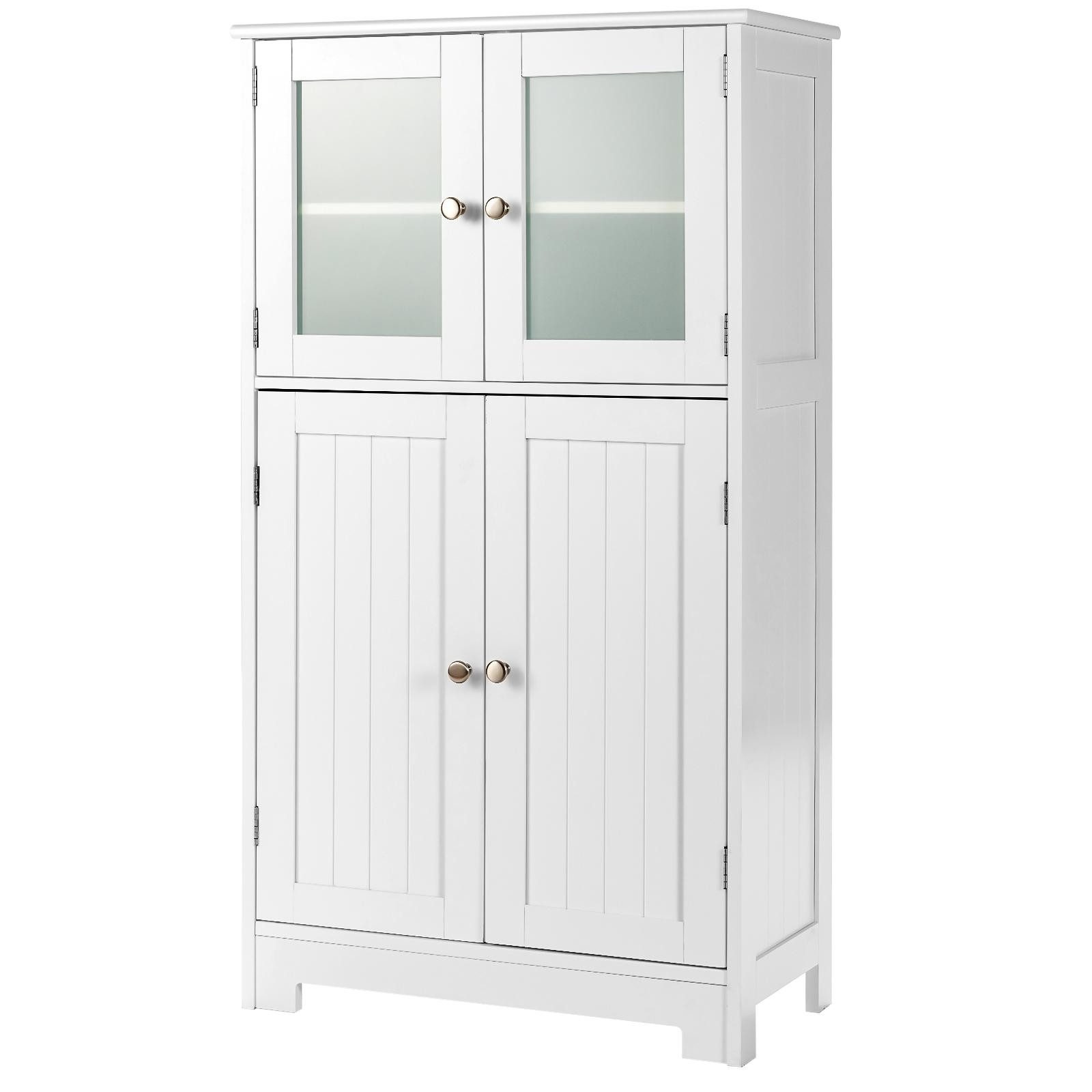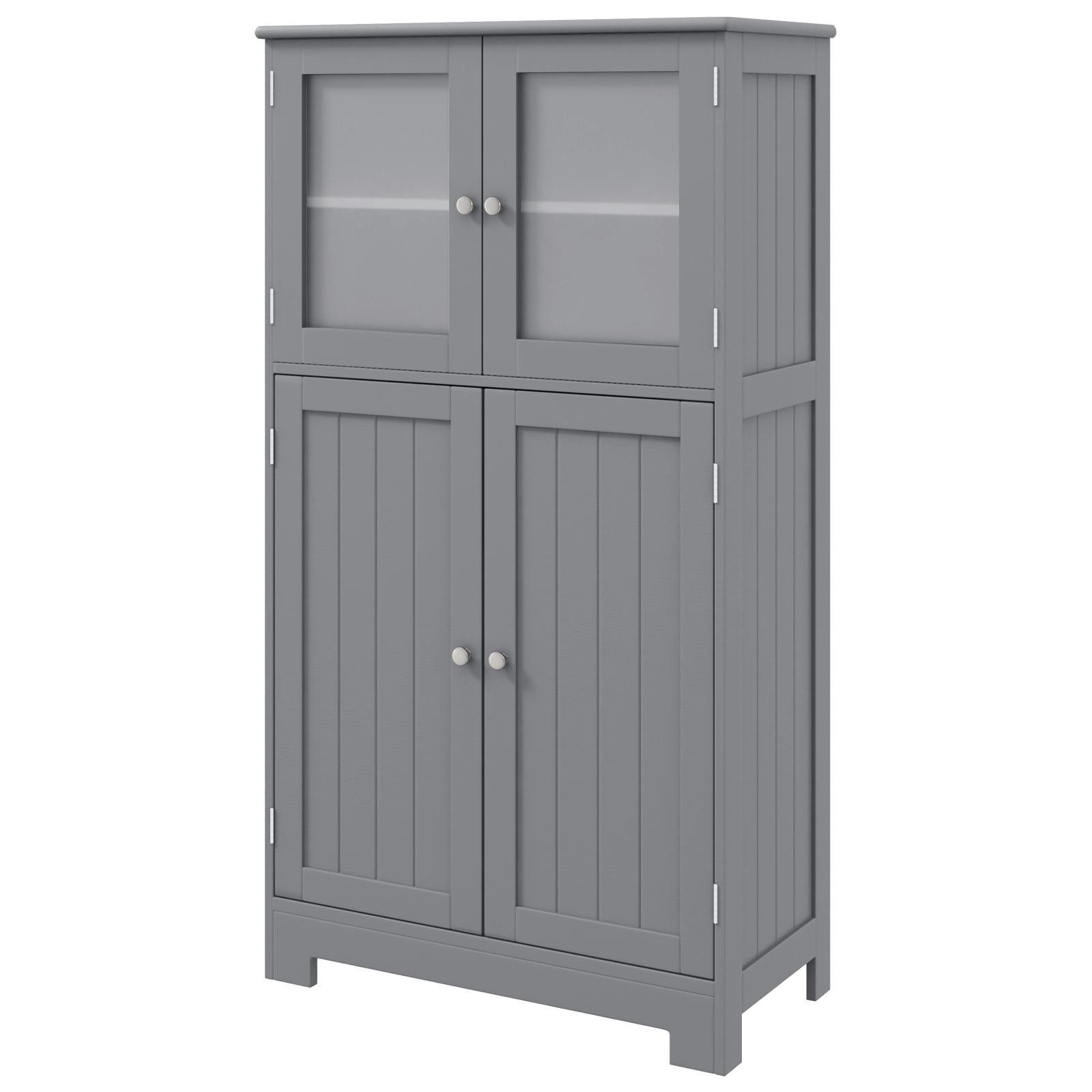 Mit einem stilvollen Design ist unserer Schrank ideal für entweder Küchen, Esszimmer, oder Badezimmer und Wohnzimmer geeignet. Die elegente Farbe mit hellen Glastüren und silberne Metallgriffe schafft der Schrank ein Minimalismus-Lebensstil in Ihrem Raum. Aus hochwertigem MDF-Platten und mit NC-Lackierung zeigt der Schrank eine hohe Qualität. Eine praktische Kapazität lässt verschiedene Gegenstände ordentlich verstaut werden.
