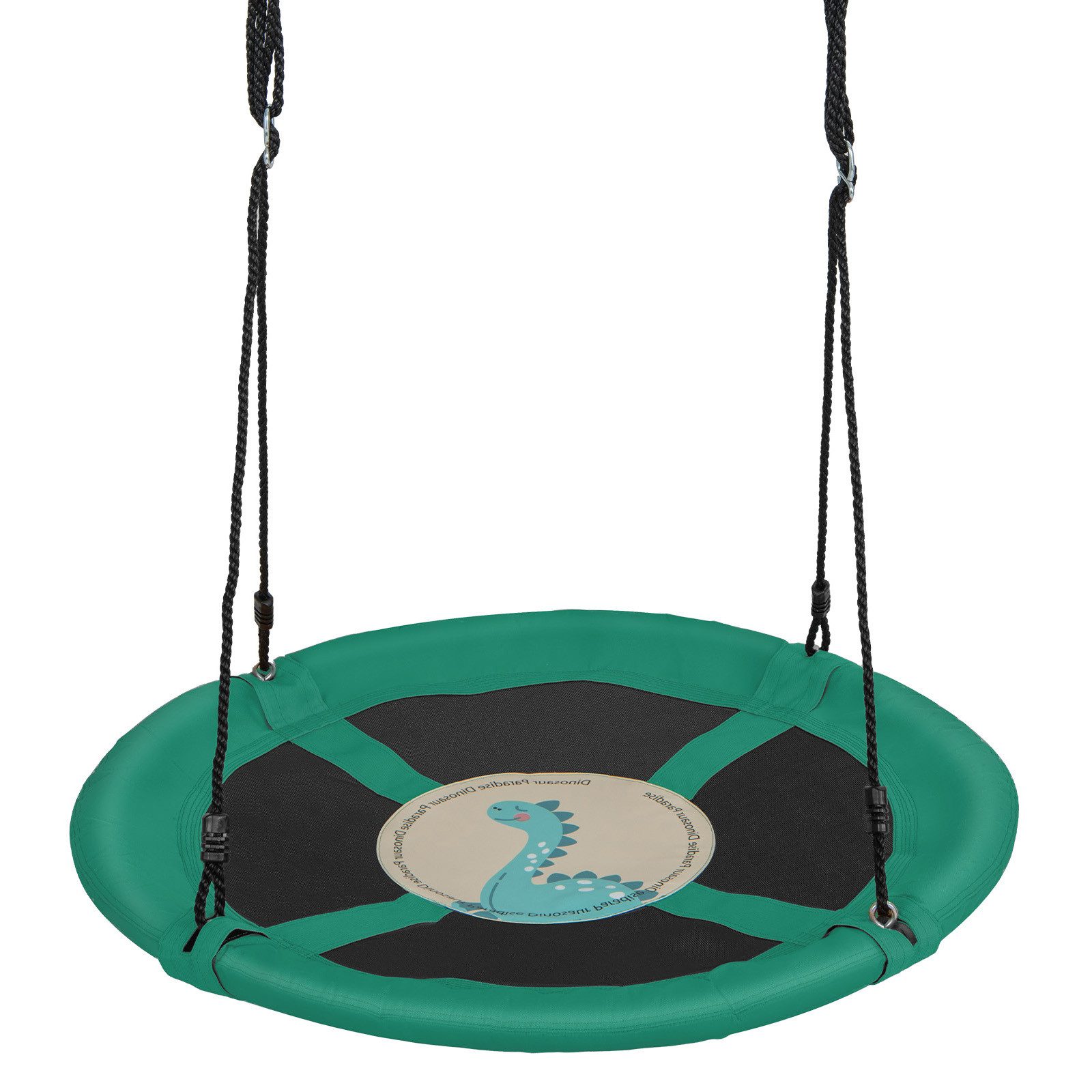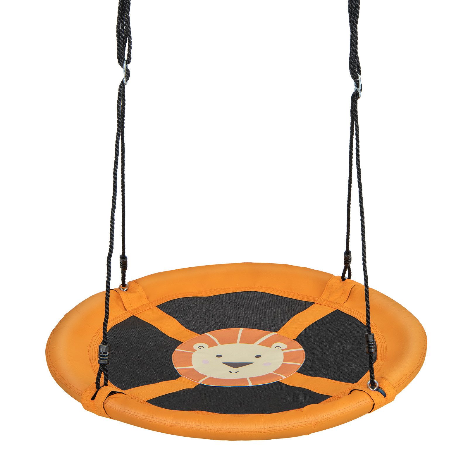 Die Kinder verbringen eine glückliche Kindheit auf der Nestschaukel. Der Sitz ist mit einem bezaubernden Motiv versehen und der geräumige Sitz mit einem Durchmesser von 102 cm bietet bequem Platz für zwei Kinder. Hergestellt aus hochdichtem Oxford-Gewebe, zeichnet sich diese Rundschaukel durch ihre Reißfestigkeit und Wetterbeständigkeit aus. Die Seile bestehen aus mehreren Strängen PE-Material und bieten eine robuste Tragfähigkeit von bis zu 100kg. Zusätzlich ist die Seillänge zwischen 118 cm und 173 cm verstellbar. Mit den beiden enthaltenen Karabinern haben Sie die Flexibilität, die Hängeschaukel von einem oder beiden Karabinern aus aufzuhängen und somit aus verschiedenen Winkeln zu schaukeln. Und die Kinderschaukel ist für drinnen oder draußen geeignet.