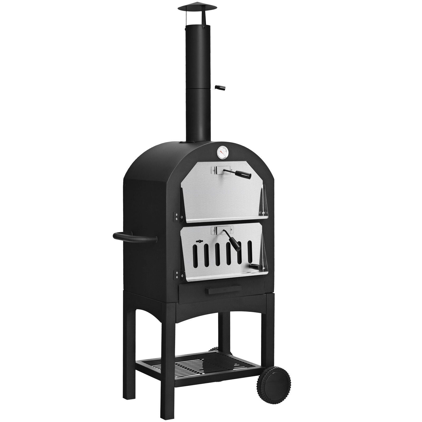 Dieser Holzpizzaofen bietet effektive Heizung mit einer maximalen Temperatur von 350 °C. Er benötigt nur 3-5 Minuten zum Vorheizen und 1-5 Minuten zum Kochen. Mit einem integrierten Thermometer können Sie die genaue Temperatur kennen. Dieser Pizzaofen kann nicht nur köstliche Pizzen zubereiten, sondern auch Fleisch, Gemüse, Brot und mehr kochen. Darüber hinaus ist dieser Outdoor-Pizza Maker mit glatten Rädern leicht zu bewegen und damit perfekt für verschiedene Outdoor-Aktivitäten geeignet. Außerdem wird der Ofen mit einer Oxford-Stoffabdeckung geliefert, die sonnen-, staub- und winddicht ist. Zusätzliche Zubehörteile wie Kohlegitter, ein hitzebeständiger Handschuh, ein Pizzaroller und ein Pizzaschieber sorgen für zusätzlichen Komfort.