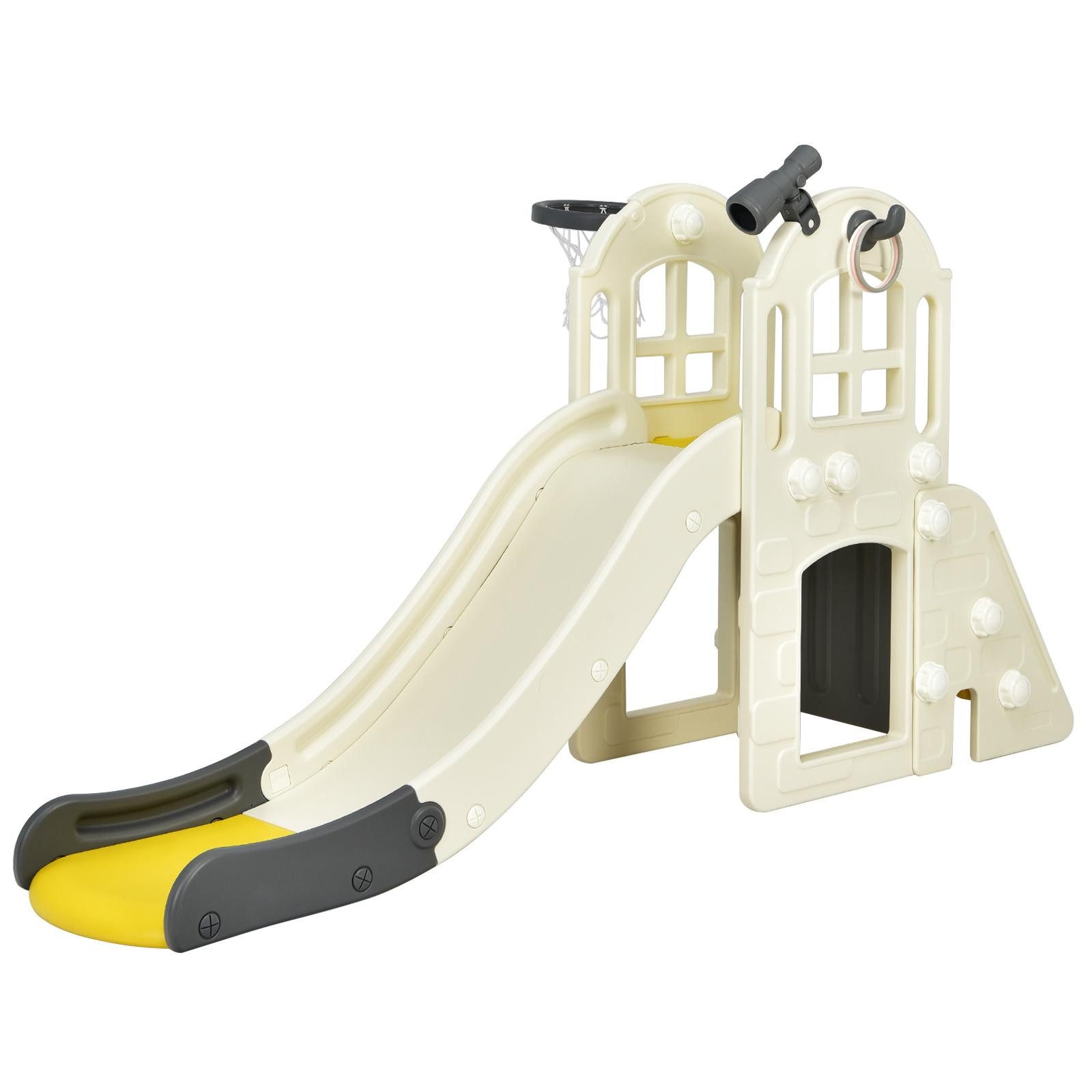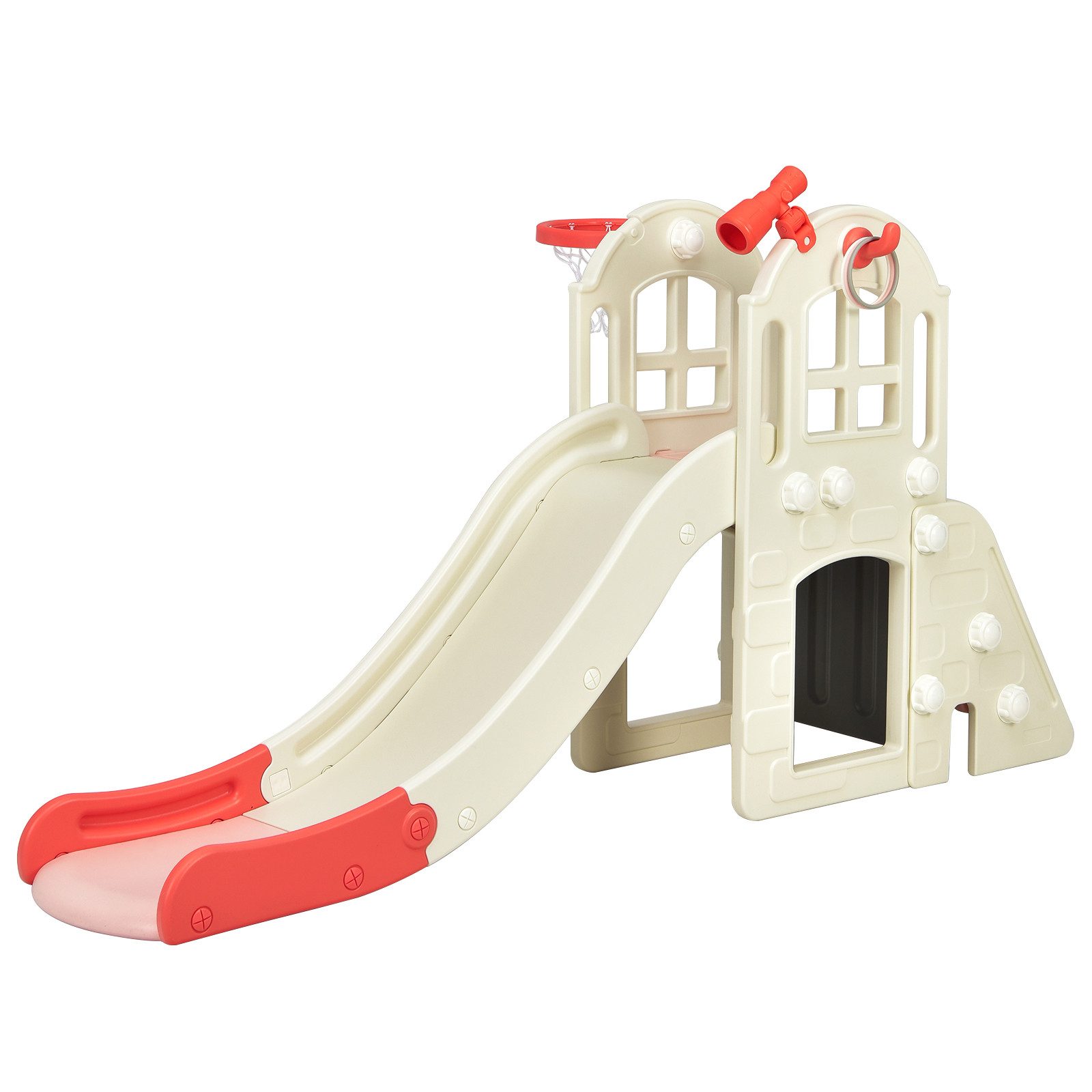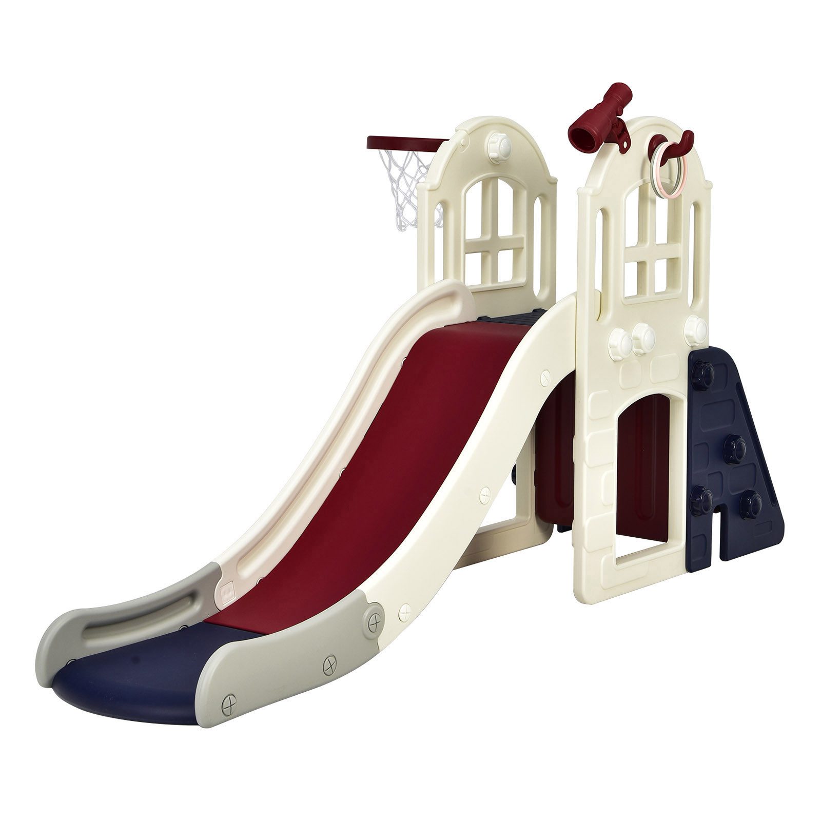 Unsere multifunktionale Rutsche ist ein wunderbarer Spielplatz für Kinder. Die Rutsche bietet eine breite Palette an Spielmöglichkeiten wie Basketball, Rutschen und Ringwerfen und verfügt über ein Teleskop und eine abnehmbare Kletterleiter, auf der mehrere Kinder spielen können. Und es gibt zwei Möglichkeiten, die oberste Plattform zu erreichen und die Kinder können dabei auch ihre Arm- und Beinkraft trainieren. Es ist erwähnenswert, dass verschiedene Bereiche der Rutsche wissenschaftlich auf die richtige Длина für das aufregendste Spielerlebnis ausgelegt sind. Die Rutsche ist aus wasserdichtem und geruchslosem HDPE-Material hergestellt und kann im Hinterhof und Innenraum verwendet werden. Darüber hinaus besitzt die Rutsche hohe Geländer, eine breite Basis und eine dreieckige Struktur für eine stabile und sichere Konstruktion.