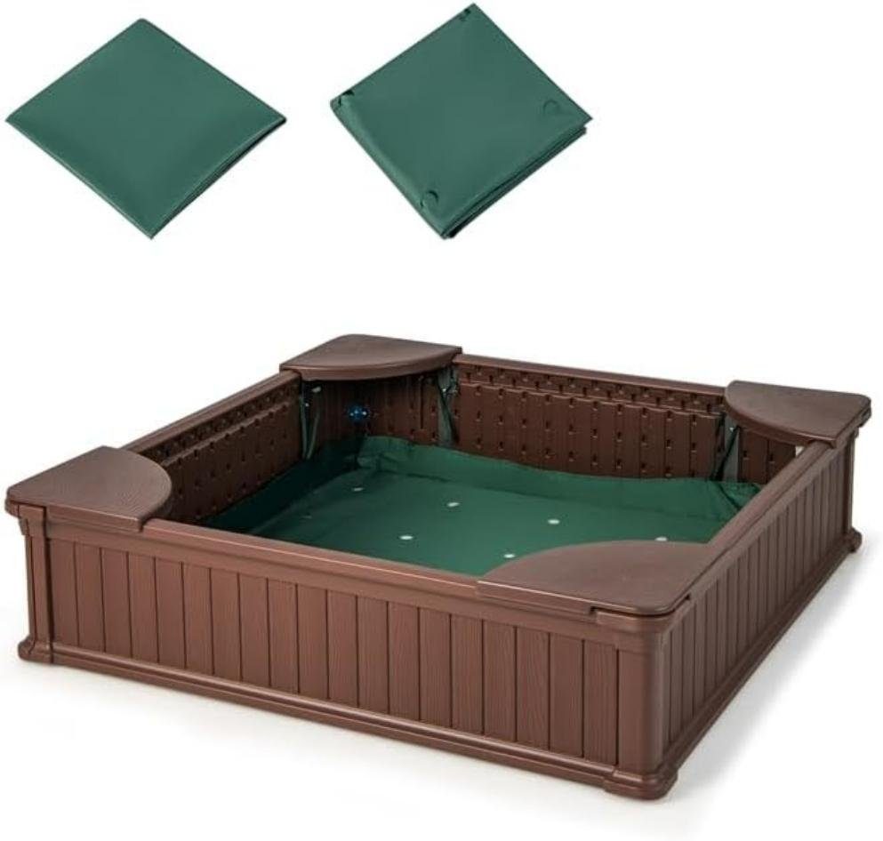 Dieser interessante Kindersandkasten sorgt für mehr Farbe und Spielspaß in der Kindheit Ihres Kindes! Das Tuch mit Löchern kann auf den Boden des Sandkastens gelegt werden, damit Feuchtigkeit und überschüssiger Sand leicht abfließen können. Und der wetterfeste Oxford-Stoffbezug verhindert, dass Tiere, Blätter oder Müll in den Sandkasten gelangen. Der geräumige Spielbereich umfasst 4 gewellte Bänke, damit Ihr Kind das Spiel genießen und eine Pause einlegen kann, wenn es müde ist. Das Beste daran ist, dass dieser Sandkasten aus hochwertigem, langlebigem HDPE-Material gefertigt ist, das einem dauerhaften Einsatz im Freien standhält.