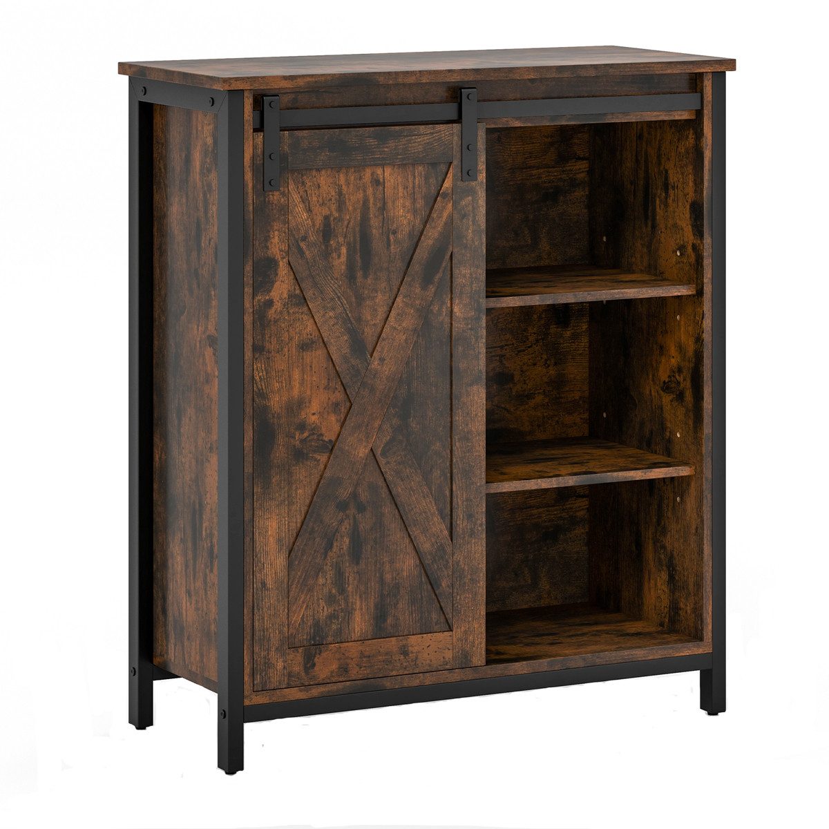 (мы ещё работаем над переводом, извините за неудобство): Verschönern Sie Ihre Küche oder Essbereich mit unserem Sideboard. Dieses stilvolle Küchenbuffet besticht durch ein Design mit Schiebetür im Scheunentor-Stil, komplett mit einem Schrank und 4 verstellbaren offenen Regalen, die ausreichend Stauraum für Geschirr, Behälter und mehr bieten. Hergestellt aus hochwertigen Materialien und pulverbeschichtetem Metall, ist dieses Akzent-Buffet-Sideboard darauf ausgelegt, jahrelang zu halten. Die mitgelieferten Anti-Kipp-Kits gewährleisten Stabilität und Sicherheit, während die verstellbaren Fußpolster zusätzliche Stabilität bieten. Der Schiebetürschrank ergänzt verschiedene Inneneinrichtungsstile und eignet sich perfekt zur Präsentation oder Aufbewahrung von Küchenelementen. Egal, ob Sie ihn in Ihrem Esszimmer, Ihrer Küche, Ihrem Wohnzimmer oder Ihrem Flur platzieren, dieses vielseitige Möbelstück ist eine perfekte Ergänzung für jeden Raum.