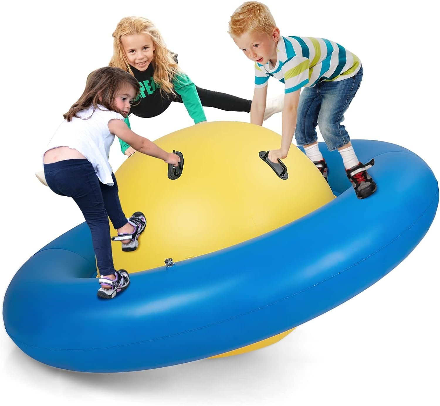 Geben Sie Ihren Kindern diesen aufblasbaren Hüpfball und schauen Sie ihnen beim Rollen und Spielen zu! Es ist eine unglaublich unterhaltsame Möglichkeit für Kinder, um Sport zu treiben, ohne das sie es merken. Die aus strapazierfähigem PVC-Material gefertigte aufblasbare Kuppelwippe ist verschleiß- und reißfest, gewährleistet eine hohe Tragfähigkeit von 113 kg und ermöglicht Ihren Kindern, viele Jahre lang damit zu spielen. Mit den integrierten großen Griffen können Kinder sie leicht greifen und bewegen. Und die ausgewogene Auf- und Abbewegung sorgt für die Sicherheit Ihres Kindes.