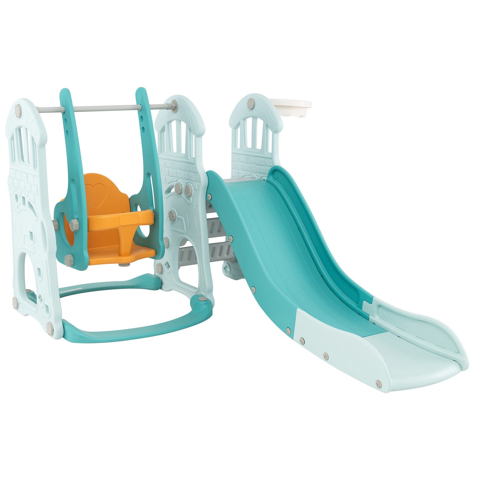 Beschreibung: Bereiten Sie Ihren kleinen Abenteurern mit diesem Indoor-Rutschen- und Schaukelsystem Freude! Das Spielset bietet eine Rutsche, eine verstellbare Schaukel, eine Kletterleiter und einen Basketballkorb für stundenlangen Spaß. Die Schaukel verfügt über 3-stufige Höhenverstellung für Kinder unterschiedlichen Alters. Die sichere Rutsche mit Puffer sorgt für ein gleichmäßiges Rutscherlebnis. Im Gegensatz zu anderen unsicheren Spielsets verfügt unser Indoor-Rutschen-Set über vollständig eingeschlossene Kletterleitern, die das Klettern sicher machen. Das Klettergerüst besteht aus BPA-freien Materialien, um Ihrem kleinen Schatz eine sichere Spielfläche zu bieten. Bei Nichtgebrauch können Sie die Rutsche für eine kompakte Aufbewahrung zusammenklappen.