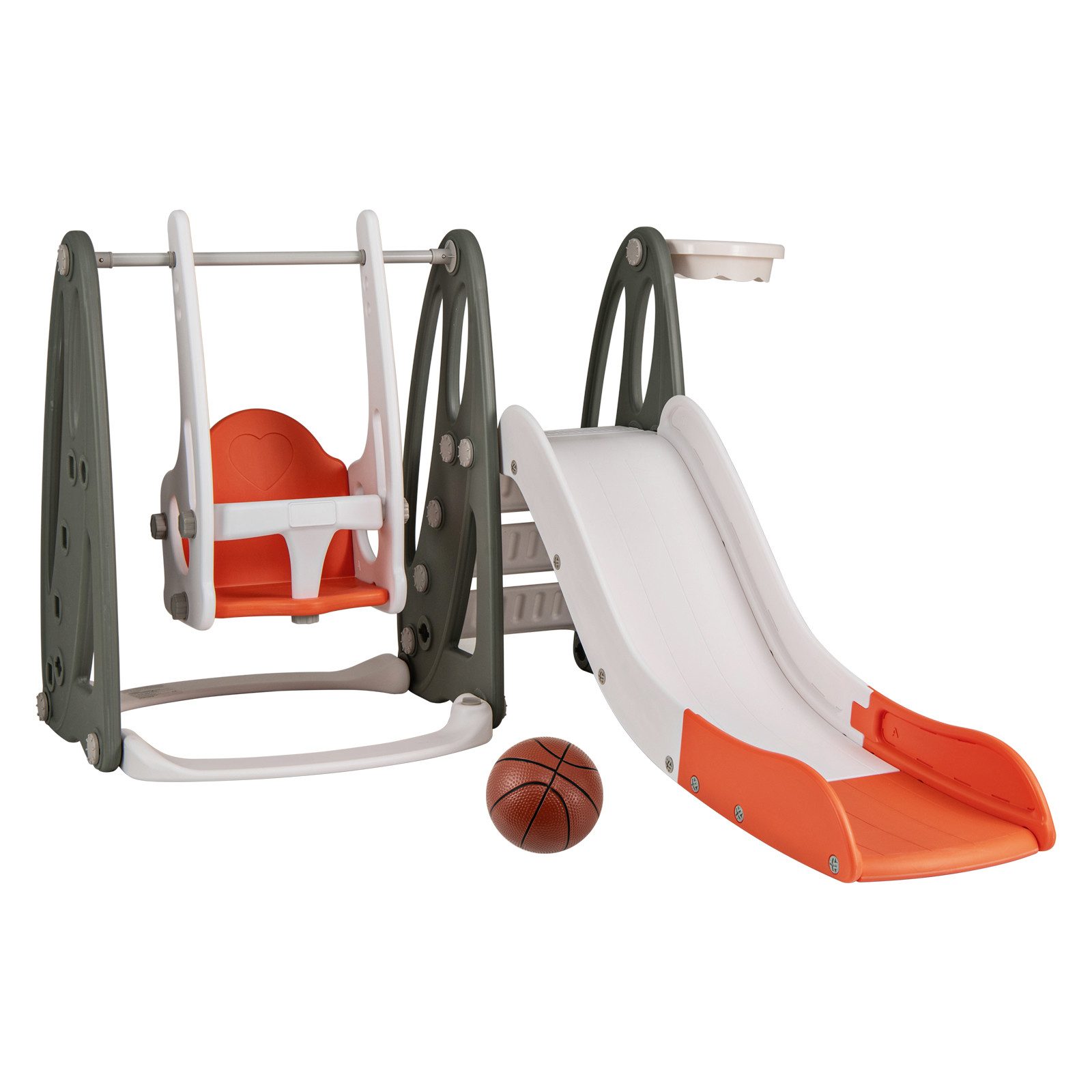 (мы ещё работаем над переводом, извините за неудобство): Suchen Sie nach einer sicheren und vielseitigen Spielstruktur für Ihr Kind? Das multifunktionale Rutschenset ist die perfekte Wahl! Dieses 4-in-1-Set mit Rutsche, Schaukel, Basketballkorb und Klettergerüst fördert Motorik und Gleichgewicht. Mit 3-stufig einstellbarer Höhe, Sicherheitsfunktionen wie einer Fallschutzwand und einem klappbaren Design für einfaches Verstauen ist es ideal für Kinder ab 18 Monaten. Diese Rutsche aus hochwertigem HDPE-Material sorgt für ein sicheres und unterhaltsames Spielerlebnis. Daher eignet sie sich für verschiedene Szenarien wie Kinderzimmer, Wohnzimmer, Spielzimmer oder Kindergärten.