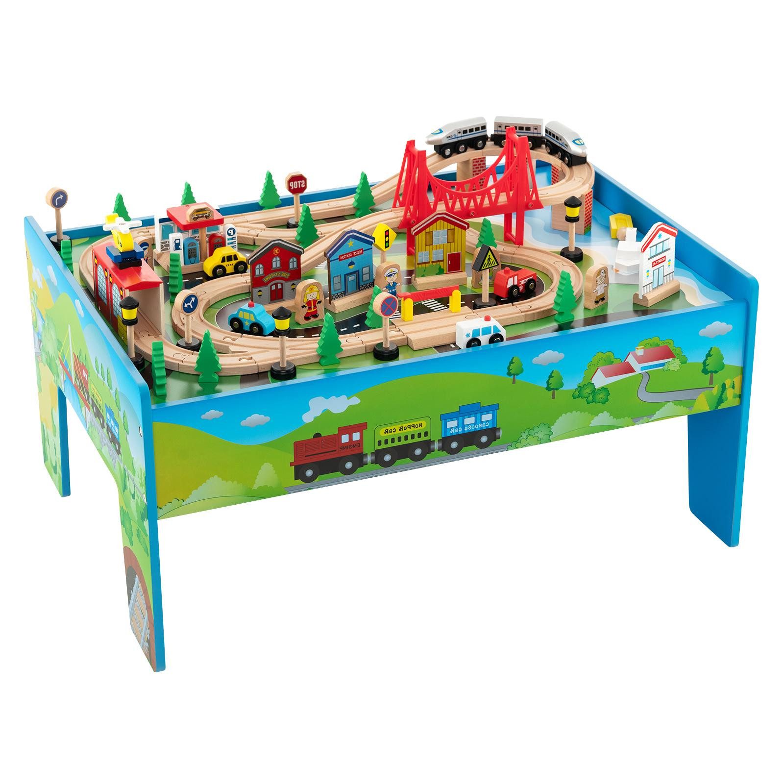 Schenken Sie Ihrem Kind stundenlangen Spielspaß mit unserem Eisenbahntisch für Kinder! Mit 80 Spielzeugkombinationen, darunter eine Vielzahl von Fahrzeug- und Straßenbauteilen, können Sie Ihrer Kreativität mit diesem Spieltisch freien Lauf lassen. Das Klappdesign ist vielseitig einsetzbar - die belebte Oberfläche kann zum Spielen mit den Fahrzeugen verwendet werden, während die glatte Oberfläche zum Lernen, Arbeiten und Lesen genutzt werden kann. Außerdem ist dieser Tisch aus dickem Massivholz gefertigt, um den Test der Spielzeit zu bestehen, mit einer glatten Oberfläche und stabilen Beinstützen für zusätzliche Haltbarkeit. Darüber hinaus sorgen gebogene Kanten und erhöhte Seitenleisten für zusätzliche Sicherheit beim Spielen. Mit seinem naturgetreuen Aussehen bringt dieser Kinderspieltisch Spaß und Energie in jedes Spielzimmer!