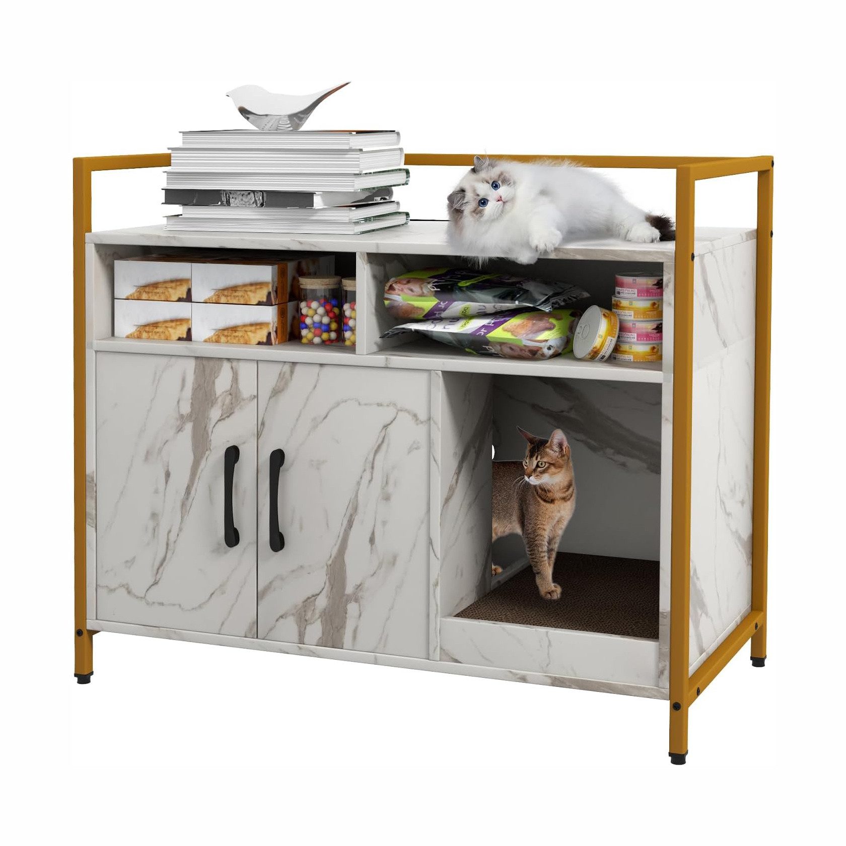 Das Katzenhaus ist mit einer großen Tischplatte und 2 offenen Fächern zum Platzieren von Zeitschriften, Topfpflanzen, Dekorationen oder Katzenzubehör ausgestattet. Dieses multifunktionale Katzenmöbel kann als Katzentoilette, Katzenhaus, Aufbewahrungsschrank, Beistelltisch, Nachttisch, Couchtisch und mehr verwendet werden, um Ihren unterschiedlichen Bedürfnissen gerecht zu werden. Das Katzenhaus ist großartig, um die Privatsphäre Ihrer Katze zu schützen und der Katze zu ermöglichen, ihre natürlichen Instinkte zu entfesseln.