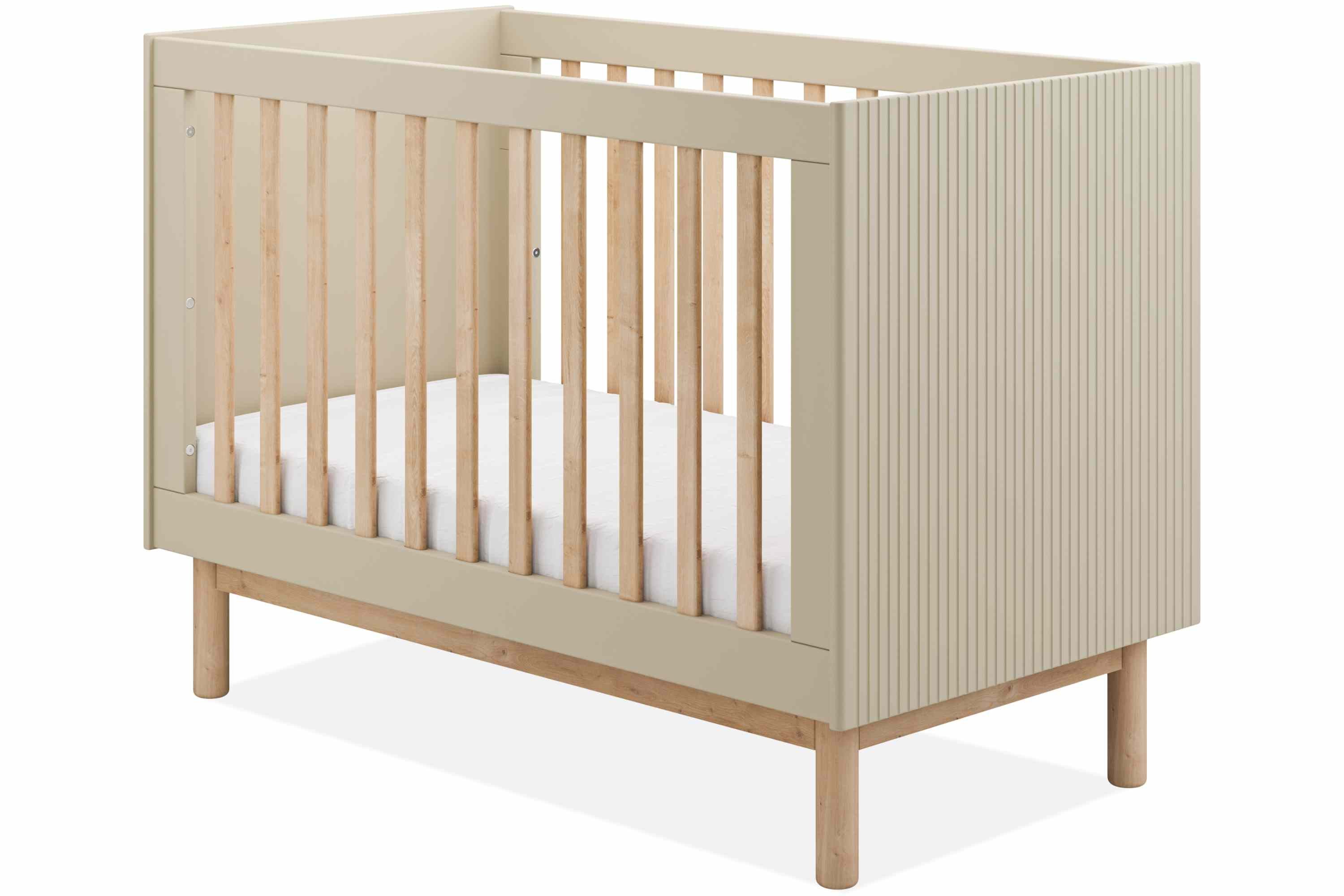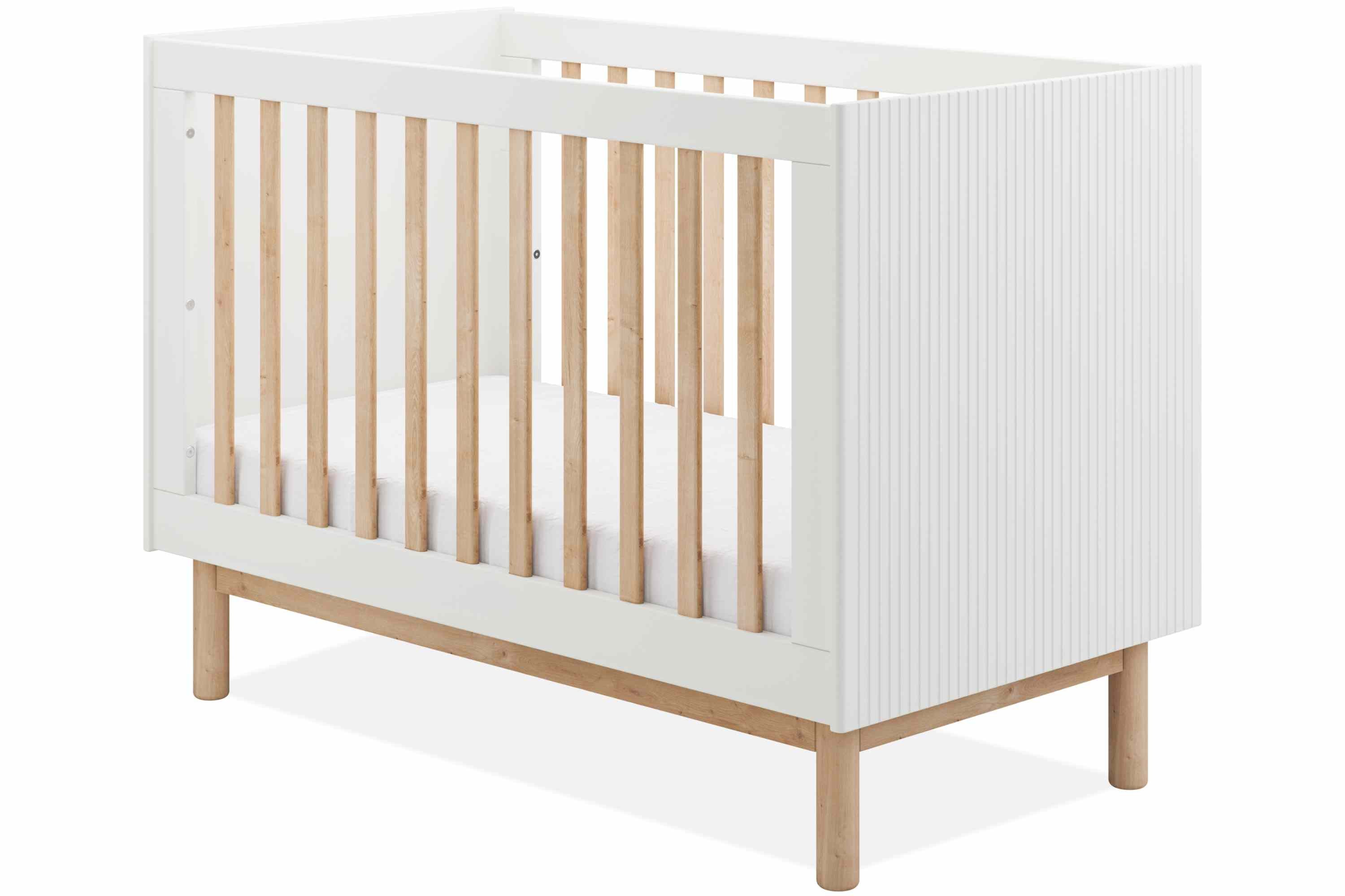 Das elegante Kinderbett, das für eine 120 x 60 cm große Matratze ausgelegt ist, zeichnet sich durch seine Vielseitigkeit aus und passt sich den wachsenden Bedürfnissen Ihres Kindes an. Es hat drei Stufen Matratzenhöhe und drei abnehmbare Sprossen für einen leichten Einstieg. Ein innovatives Merkmal ist, dass eine Seite des Kinderbettes abgenommen werden kann, so dass Sie es an das Wachstum Ihres Kindes anpassen können.