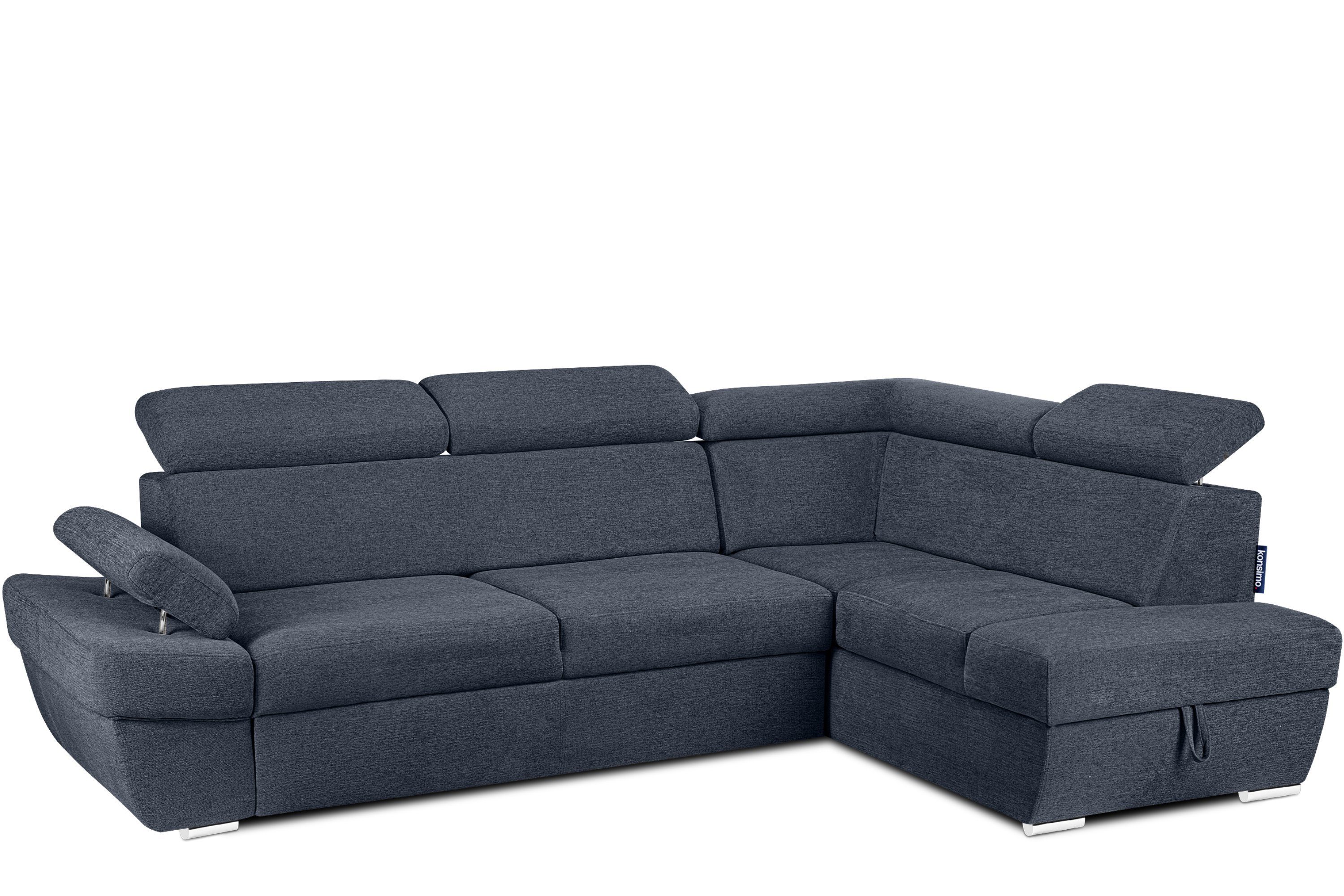 Das gepolsterte Ecksofa RATLO ist perfekt für Wohnzimmer, Büros und andere Räume. Das Ecksofa zeichnet sich durch seine große Nutzfläche aus und sein Design sorgt für bequemes Ausruhen. Die Verwendung von Riffel- und Bonellfedern in der Sitzfläche sorgt für die richtige Steifigkeit und verformt sich nicht mit der Zeit. Die Polsterung aus Stoff fühlt sich angenehm an und ist teilweise schmutzabweisend. Bei dem Ecksofa lassen sich die Kopfstütze und die Armlehnen einfach und bequem auf Ihre Bedürfnisse einstellen. Das neutrale Design wird auch die Erwartungen der anspruchsvollsten Personen erfüllen - es passt sowohl in moderne als auch in klassischere Einrichtungen. Das Ecksofa RATLO smart ist eine tolle Ergänzung für Ihr Wohnzimmer oder Ihre Lounge. Es ist ideal für kleine Wohnungen, in denen es nicht möglich ist, ein Schlafzimmer als Ort zum Schlafen und Entspannen abzutrennen.