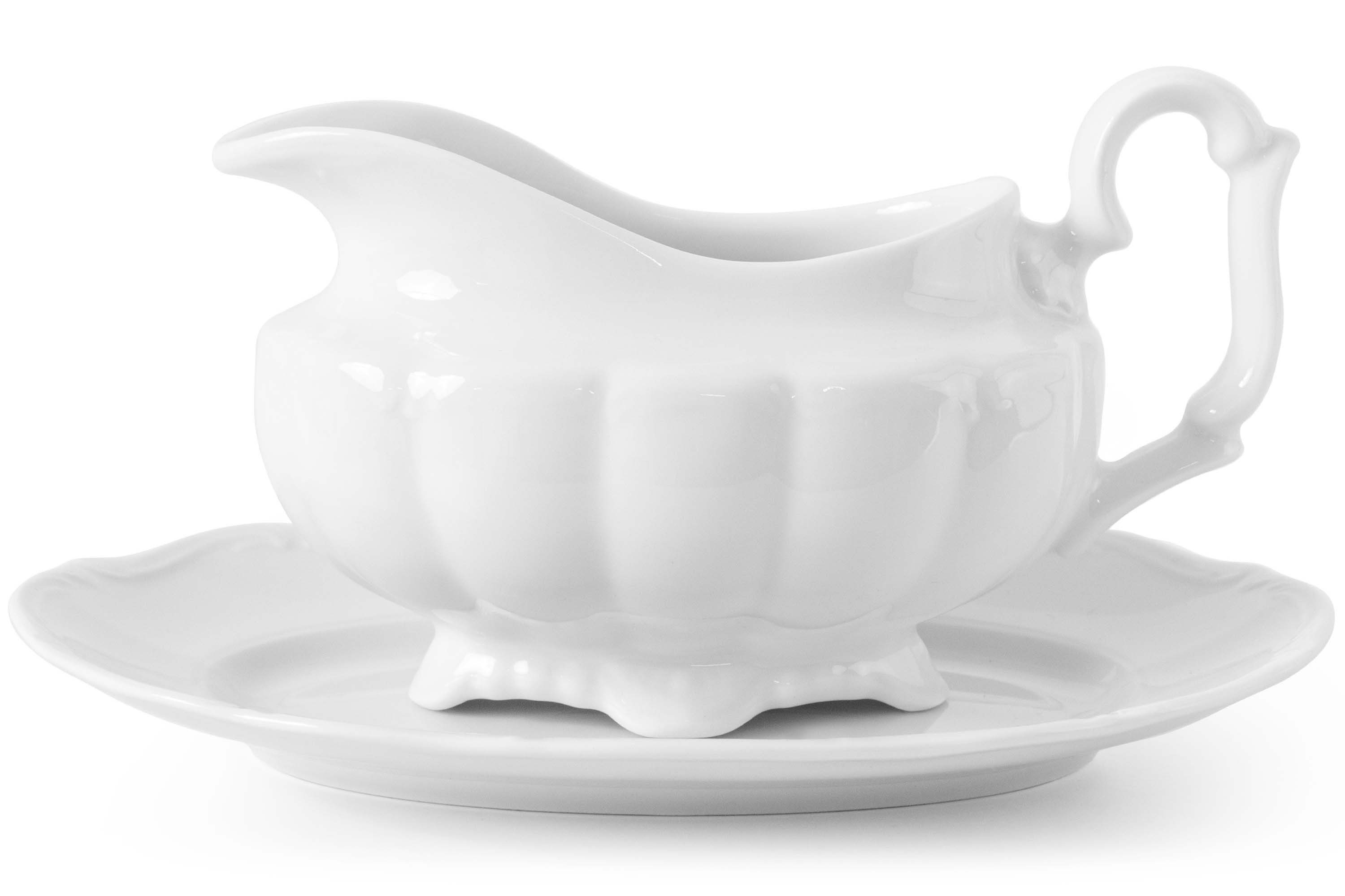 1x Sauciere 10 cm x 18 cm | h 11,5 cm | 500 ml 1x Untertasse 14,5 cm x 22 cm | h 2,5 cm