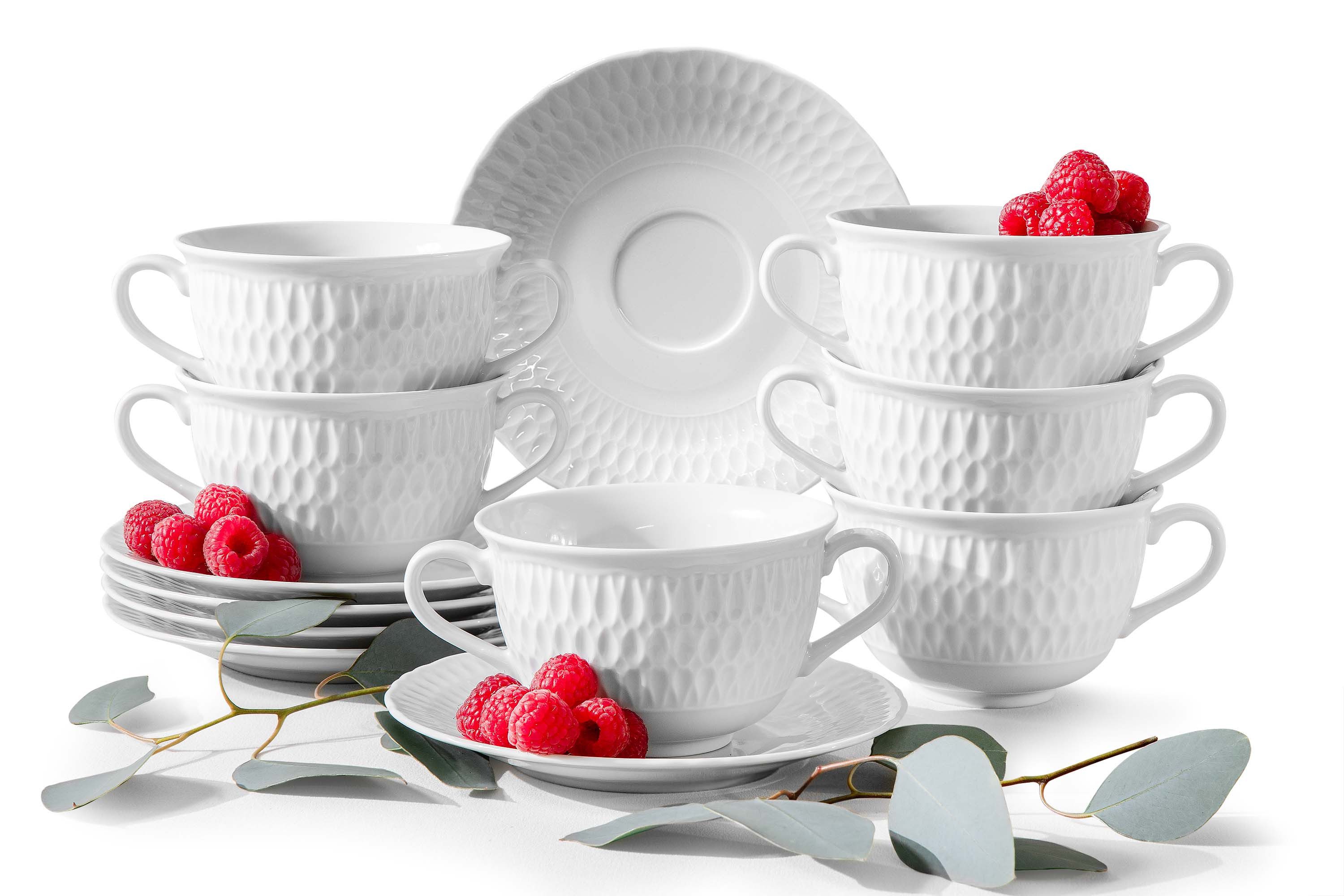 6x Suppenschale 15 cm x 11 cm | h 7 cm | 350 ml 6x Untertasse Ø15,7 cm