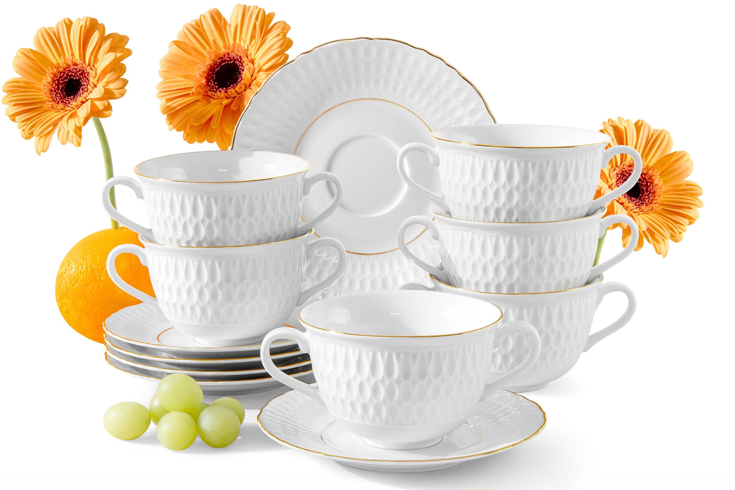 Die Porzellankollektion SOFIA ist eine Kombination aus klassischer und zeitloser Eleganz, die in zwei einzigartigen Вариантыn erhältlich ist: weiß und handdekoriert mit einer zarten Linie aus echtem Gold. Charakteristisch für diese Kollektion sind die subtilen Rillen, die an die Form einer Träne erinnern, ihr einen einzigartigen Charme verleihen und ihren raffinierten Stil unterstreichen. Jedes Geschirrteil ist aus hochwertigem europäischem Hartporzellan gefertigt, das sich durch seine sorgfältige Ausarbeitung von anderen unterscheidet.