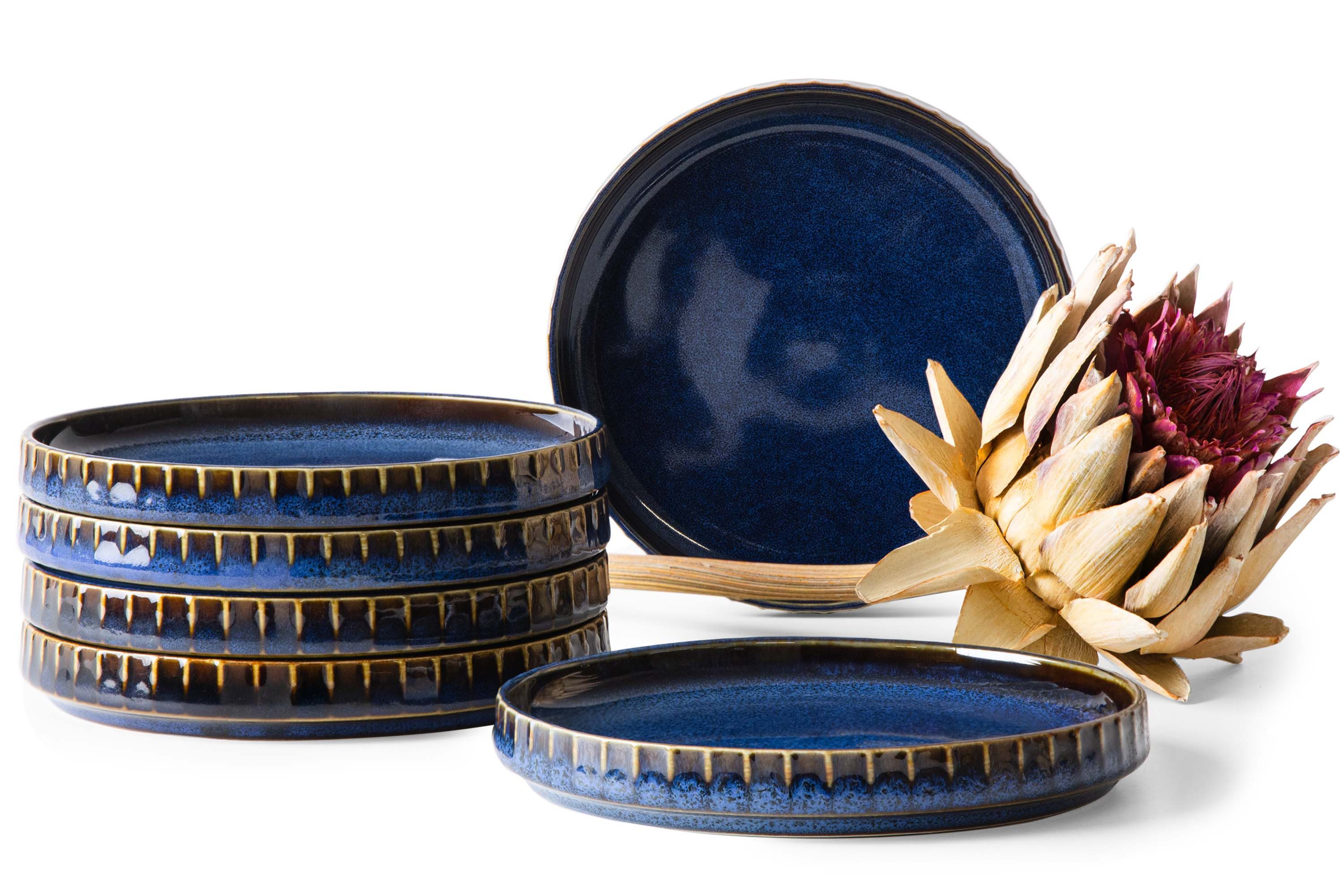 Inspiriert von den neuesten Trends, begeistert sie durch das individuelle Design jedes einzelnen Elements. Dank der außergewöhnlichen Technik der reaktiven Glasur wird jedes Element der Kollektion zu einem kleinen Kunstwerk – der Brennvorgang erzeugt einzigartige Muster und Schattierungen, die sich nie wiederholen und jedem Element einen unverwechselbaren Charakter verleihen. Ein zusätzlicher Akzent sind die handbemalten schwarzen und braunen Kanten, die einen subtilen Hauch von künstlerischer Eleganz verleihen und die Sorgfalt der Verarbeitung unterstreichen.