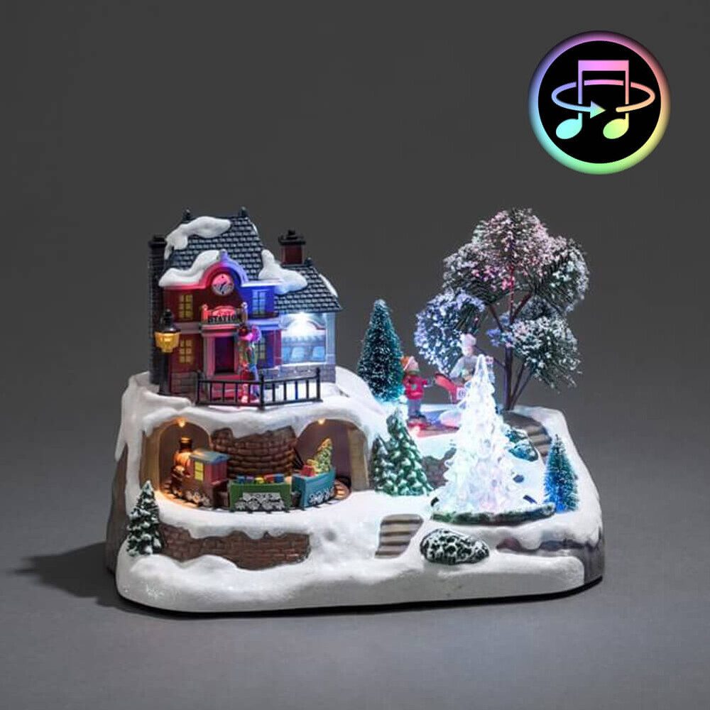 LED Szenerie Bahnhof mit Kristallweihnachtsbaum