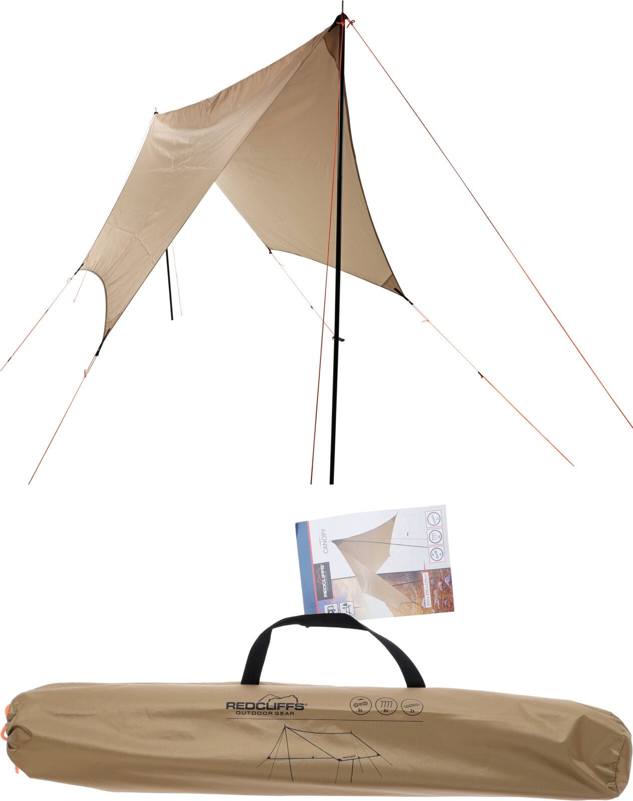 • Tarp Dach, 2 Gestellstangen, 6 Heringe und 6 Befestigungsleinen