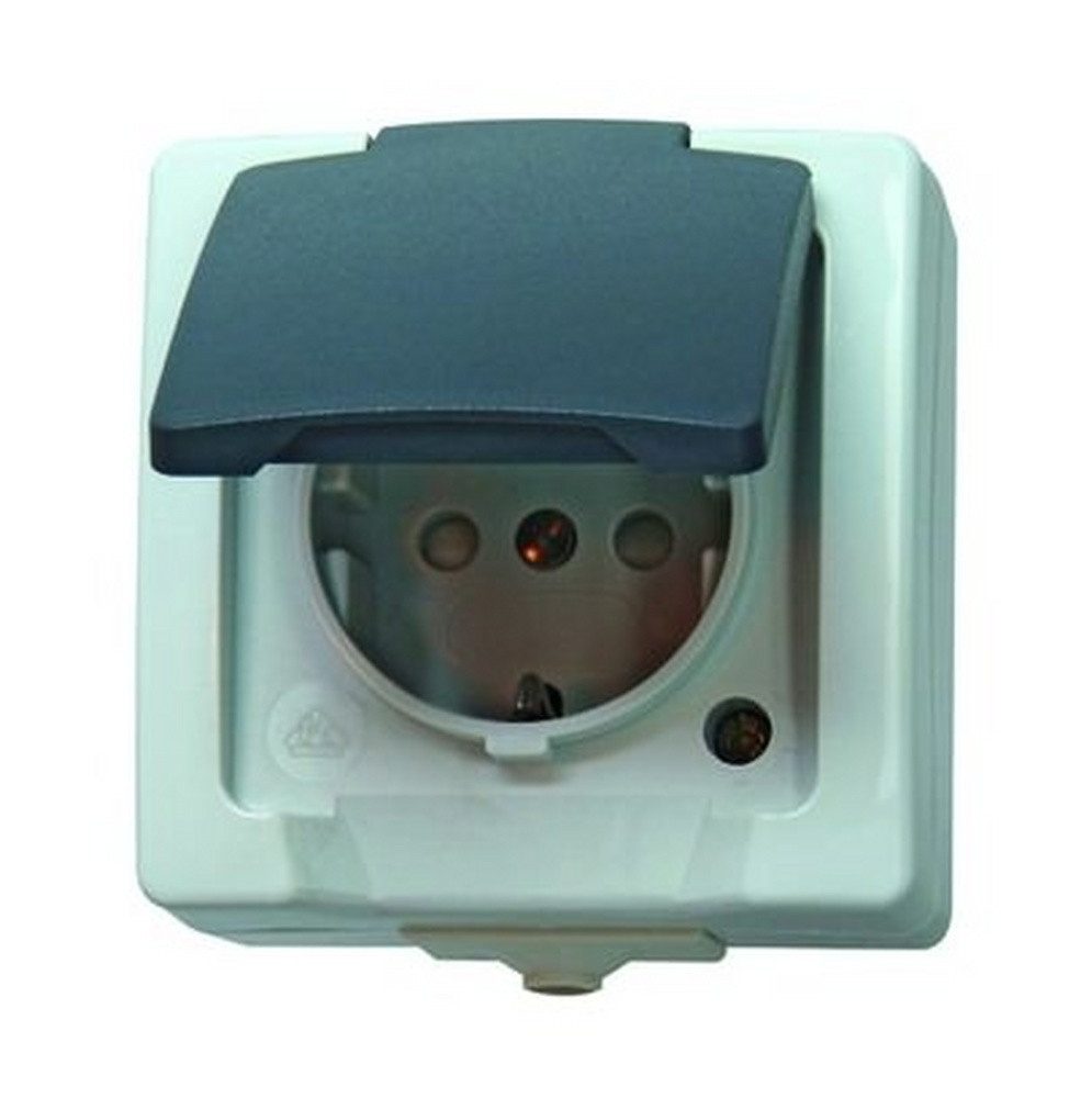 Kopp Steckdose 1fach grau matt Aufputz mit erhöhtem Berührungsschutz horizontal/vertikal mit Klappdeckel IP44 Komplettgehäuse