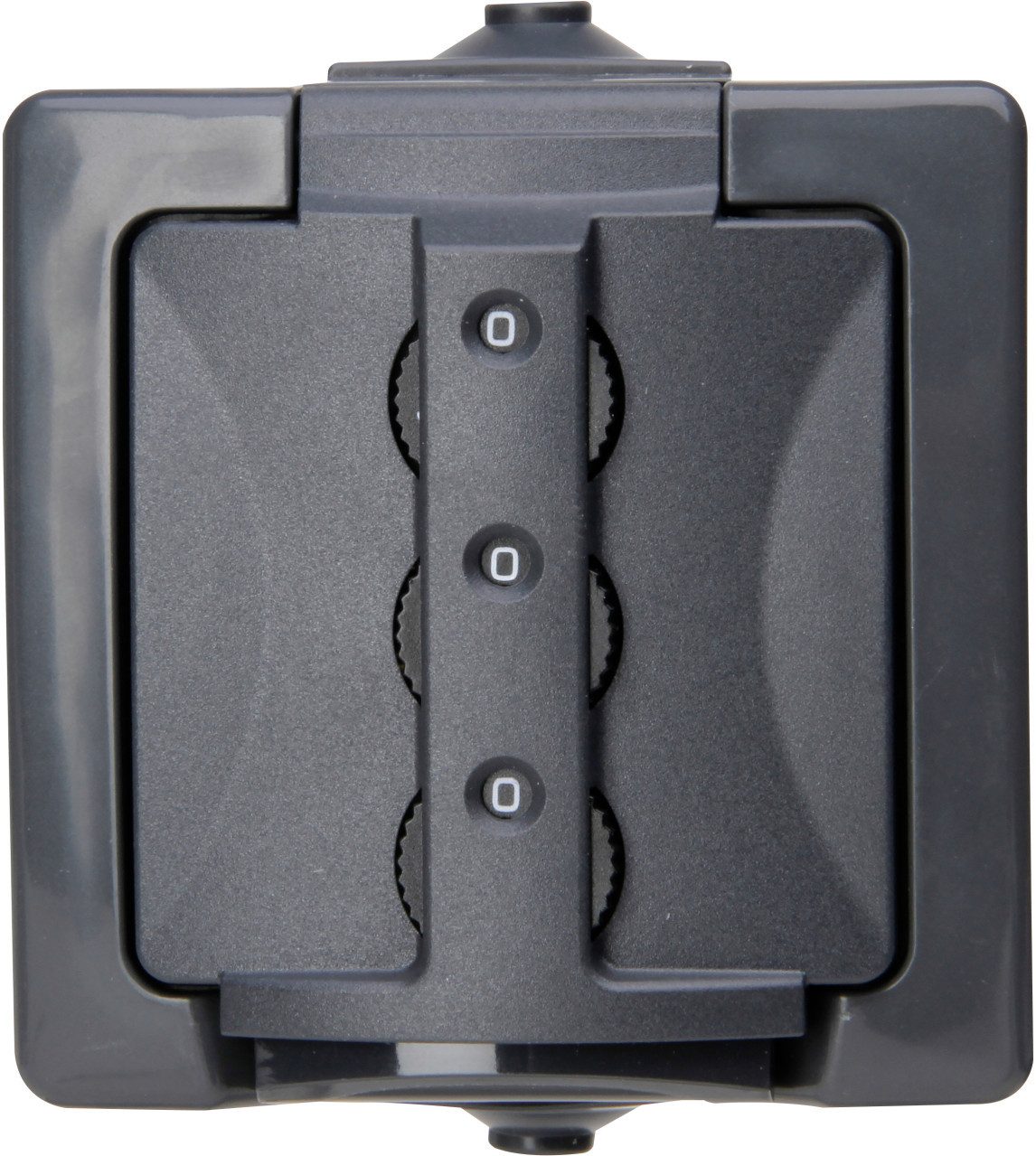 Produktdetails: Schalterprogramm: Nautic | Farbe: anthrazit | Schutzart: IP 44 | Schutzkontakt-Steckdose mit Zahlenschloss | Anschlussart: Stecklemme | ohne Sonderstromversorgung | Montageart: Aufputz | Montagerichtung: senkrecht | Befestigungsart: Schraubbefestigung | Material: Kunststoff | Werkstoffgüte: Thermoplast | Anschlussart: Steckklemme | mit Klappdeckel | Anzahl der Einheiten: 1 | mit erhöhtem Berührungsschutz | Nennstrom: 16 A | Nennspannung: 250 V |