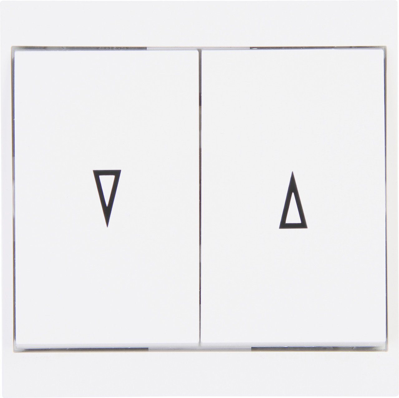 Jalousienschalter im Design MALTA und der Farbe arktisweiß mit einer Nennspannung von 250V~ sowie einem Schaltvermögen von 10AX, Schutzart IP20.