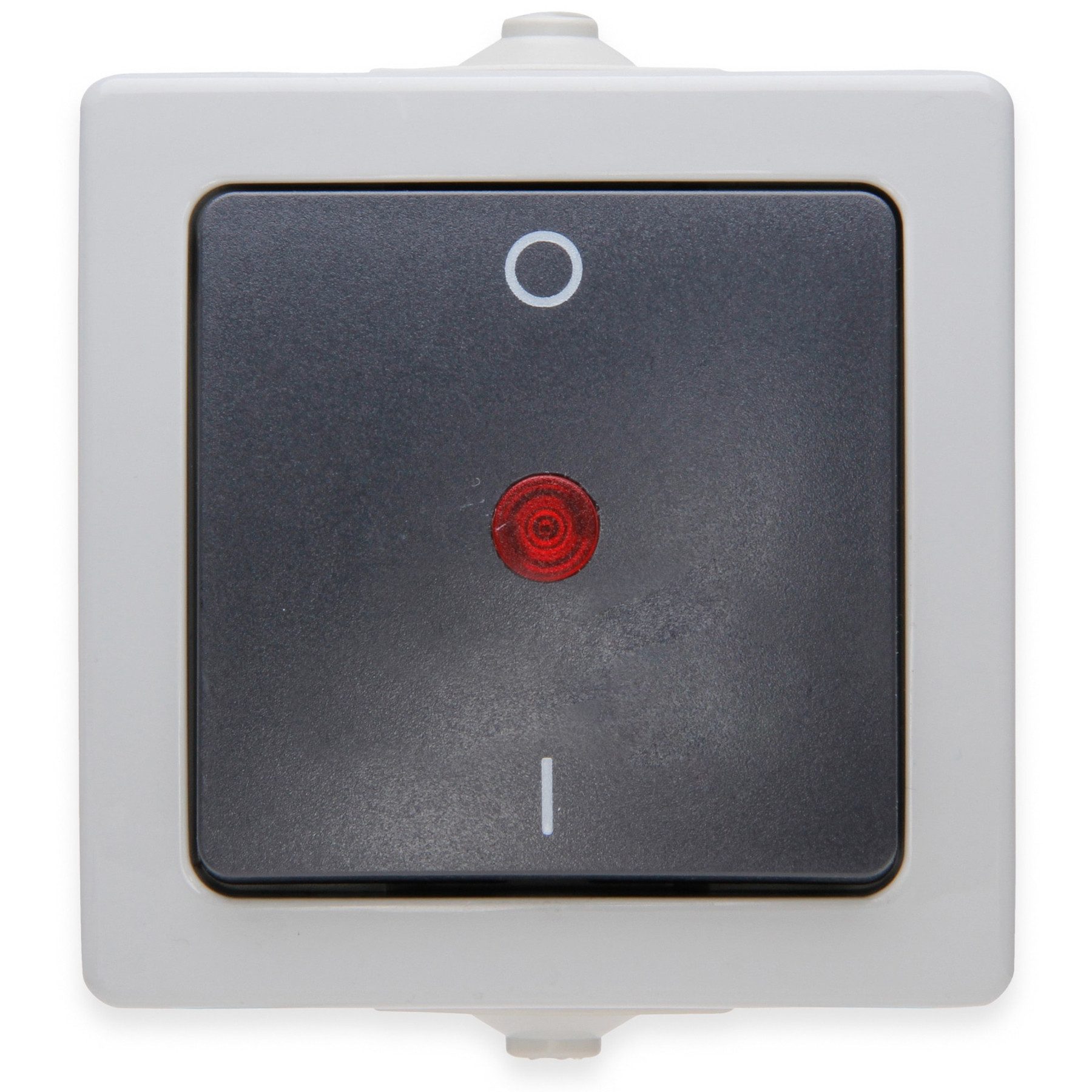 Aufputz-Feuchtraum 2-poliger Ausschalter beleuchtet im Design NAUTIC und der Farbe grau mit einer Nennspannung von 250V~ sowie einem Schaltvermögen von 10 AX. Schutzart IP44.