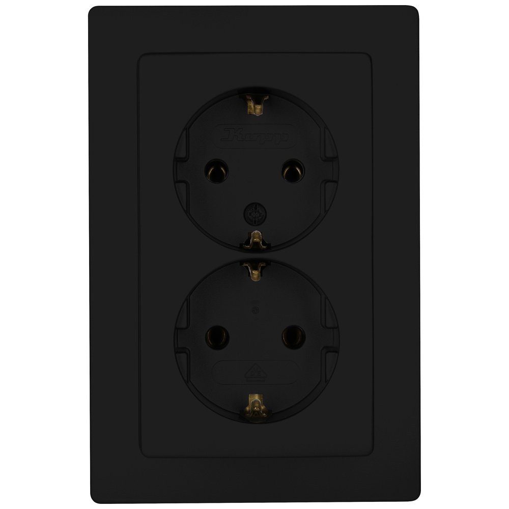 2-fach Schutzkontakt-Steckdose im Design Paris und der Farbe Mattschwarzmit erhöhtem Berührungsschutz.Komplettgerät für eine Schalterdose mitDurchmesser Ø 60 mm.