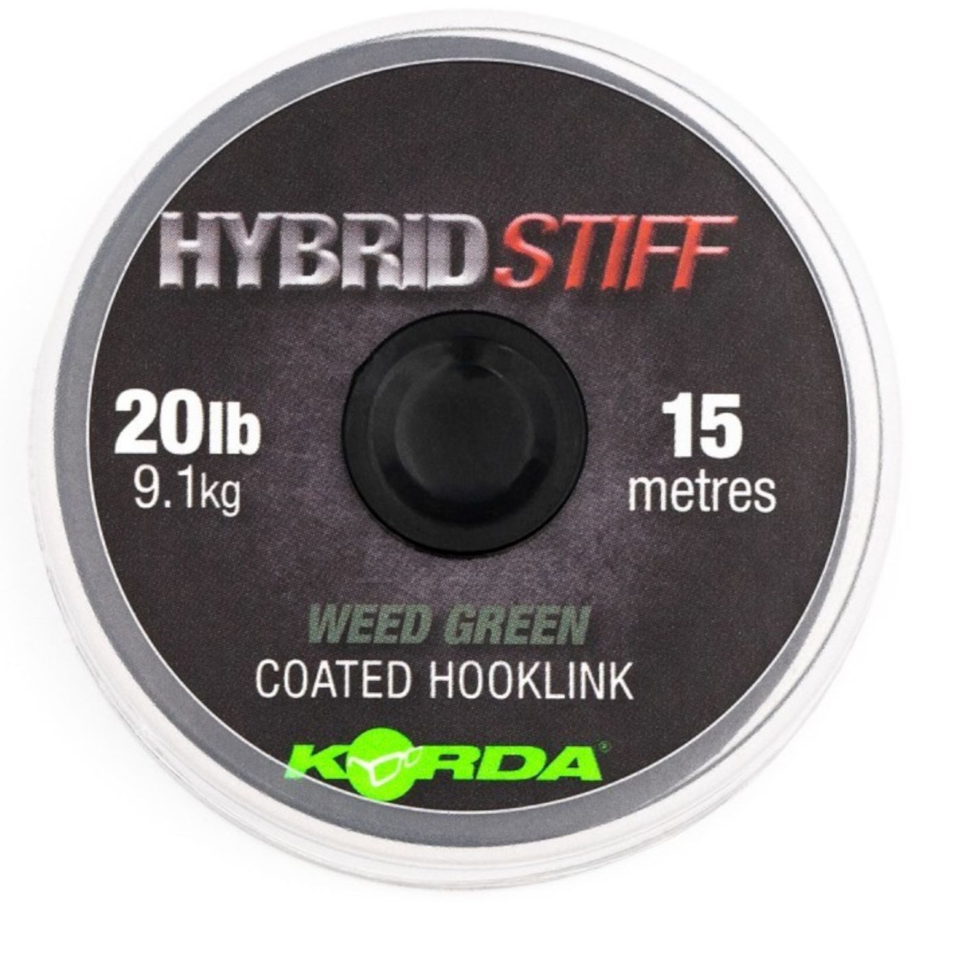 Korda Hybrid Stiff - Ein robustes, steifes, beschichtetes Geflecht von Korda, das sich sehr gut für den Einsatz an festen Stellen eignet. Es hat eine steife, klare Beschichtung, die ihm hilft, sich an eine Vielzahl von Seebodenbedingungen anzupassen. Die Beschichtung kann abgezogen werden, um eine Reihe von Grundköder- und Pop-up-Präsentationen zu ermöglichen.