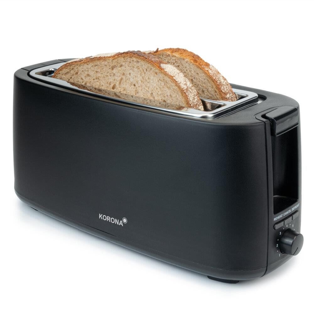 Der Langschlitztoaster besitzt eine integrierte Brotscheibenzentrierung. Diese sorgt für ein gleichmäßiges Toasten beider Brotseiten.