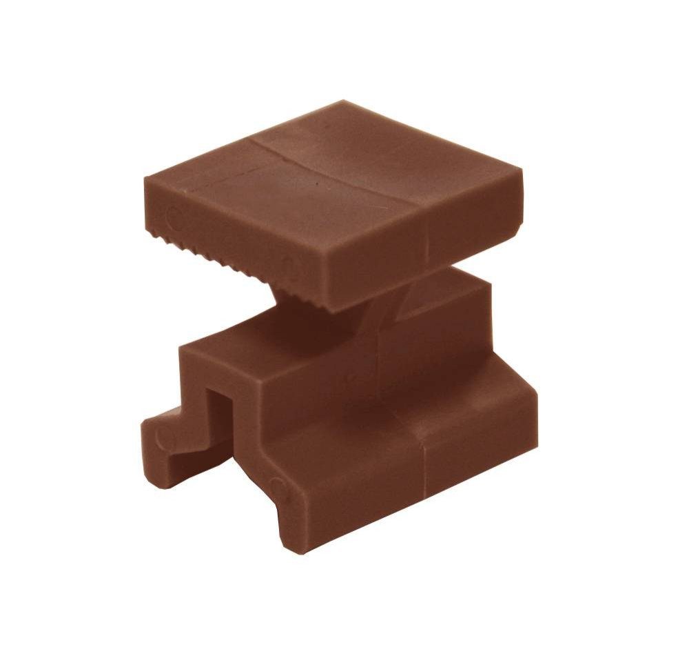 Produktdetails: Maß: ca. 6 cm (Breite) | Farbe: braun | Materialspezifizierung: Kunststoff | Oberflächenbehandlung: keine | Inhalt: 25 Stück | Anwendungsbereich: Terrassendielen | Anwendung: zur Befestigung von Terrassendielen auf Unterkonstruktionen | Впередe Eigenschaften: Bedarf für 1 m²: ca. 18 Stück (Unterkonstruktions-Abstand: 45 cm), Bedarf für 1 m²: ca. 25 Stück (Unterkonstruktions.-Abstand: 30 cm) |