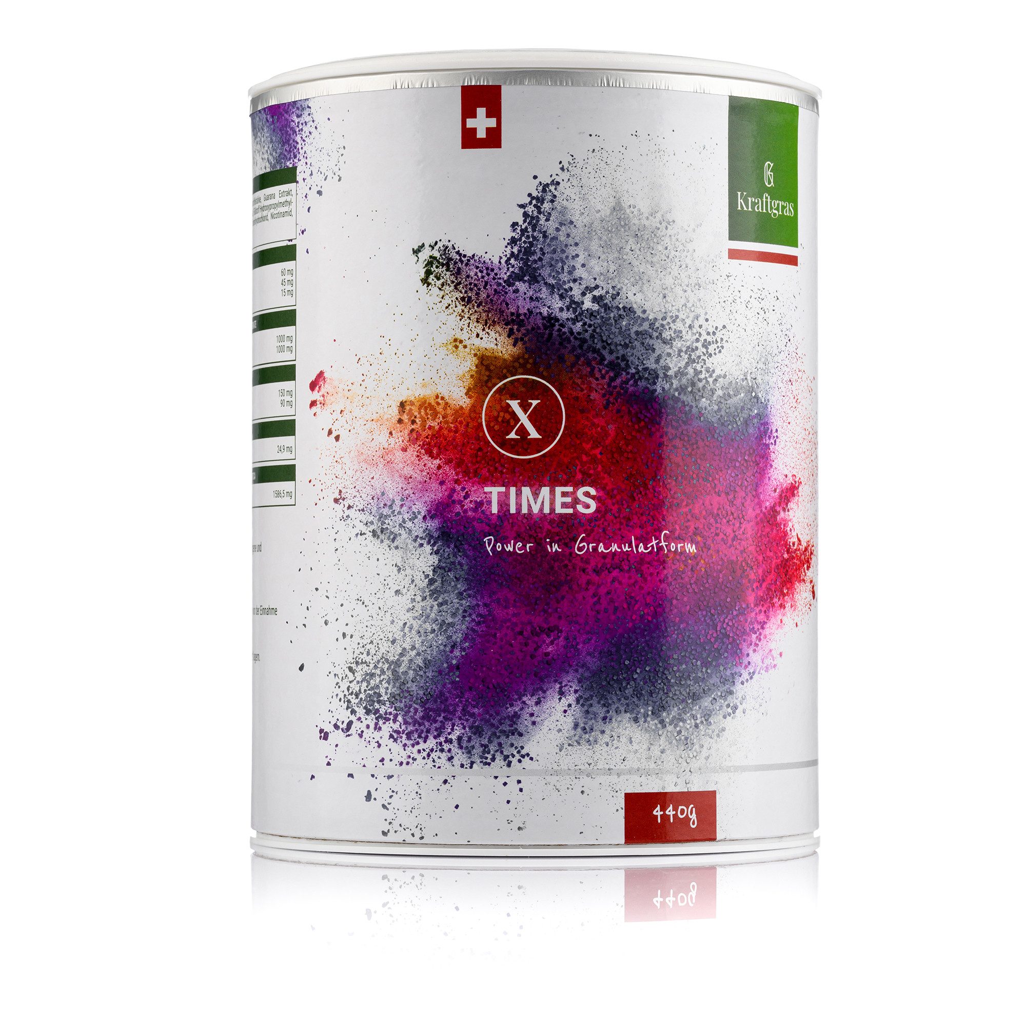 KRAFTGRAS Times: Deine Quelle für geballte Energie Entfessle dein volles Potenzial – mit unserer KRAFTvollen Granulat-Mischung „Times“, in der die pure Energie der Gräser auf die X-tra Kraft von Cholin, Koffein, Taurin, Kreatin und Vitaminen trifft. Der einzigartige Mix beinhaltet: - Urweizengrassaftpulver in Bio-Qualität, - hochwertige Vitamine, - Cholin - Creatin Monohydrat, - Taurin & Guarana-Extrakt als natürliche Koffein-Quelle. Bio Weizengrassaftpulver: KRAFTvolle Unterstützung aus der Natur Hauptbestandteil unseres Times-Granulats ist ein wahrer Held der Natur: Urweizengras, das unter strengen biologischen Standards angebaut, schonend gepresst & anschließend zu Pulver verarbeitet wird. Times: Bring deine Performance auf ein neues Level! Unsere besondere Nährstoff-Kombination „Times“ wurde von Sportlern speziell für Sportler und Energiesuchende entwickelt, um dich genau dann zu unterstützen, wenn es darauf ankommt – sei es beim Ausdauertraining, beim Wettkampf, im Kraftsport oder bei mentalen Höchstleistungen. Die ausgewählten Zutaten verleihen dir einen Energie-Boost und tragen zu einer verbesserten Leistungsfähigkeit, Konzentration, Ausdauer und Regeneration bei. - vegan - Rohkost-Qualität - glutenfrei - laktosefrei - ohne Farb- und Aromastoffe - Ohne Konservierungsstoffe - Frei von Schadstoffen Hergestellt in der Schweiz Dank der einzigartigen Granulat-Technologie wird die optimale Aufnahme der Mikronährstoffe sichergestellt. Wir empfehlen die Einnahme von ca. 27,5 ml am Tag – besonders lecker im Joghurt! Wenn es mal schnell gehen muss, kannst du Times ganz einfach pur mit einem Schluck Wasser oder mit etwas Joghurt genießen.