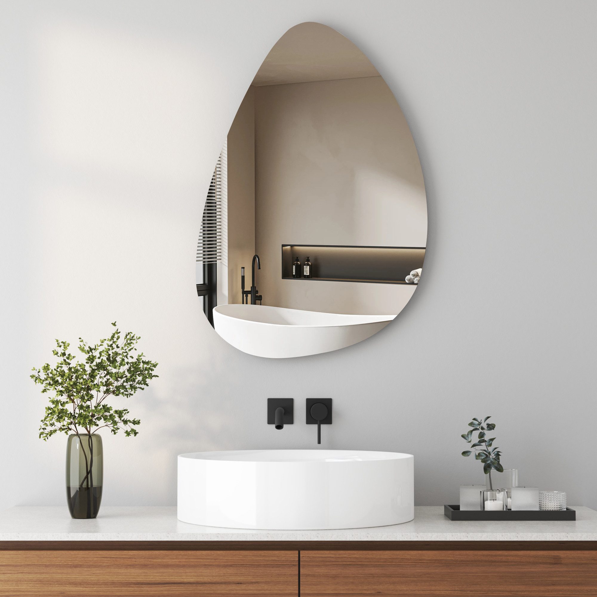 KreaGo Asymmetrischer Spiegel Wassertropfen 45x70cm - 5mm HD Glas