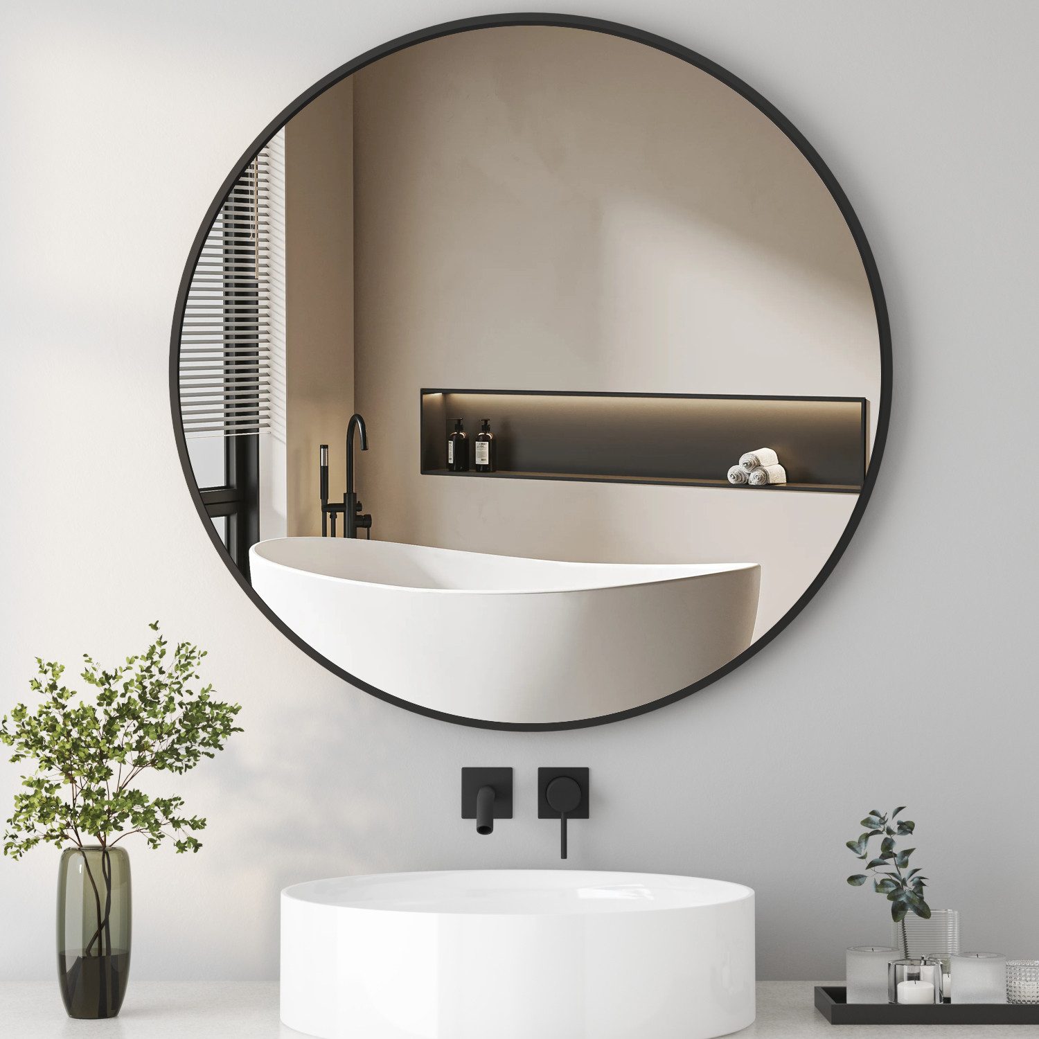 KreaGo Rundspiegel Schwarz mit Alurahmen Ø100cm - 5mm hochauflösend kupferfreie Spiegel