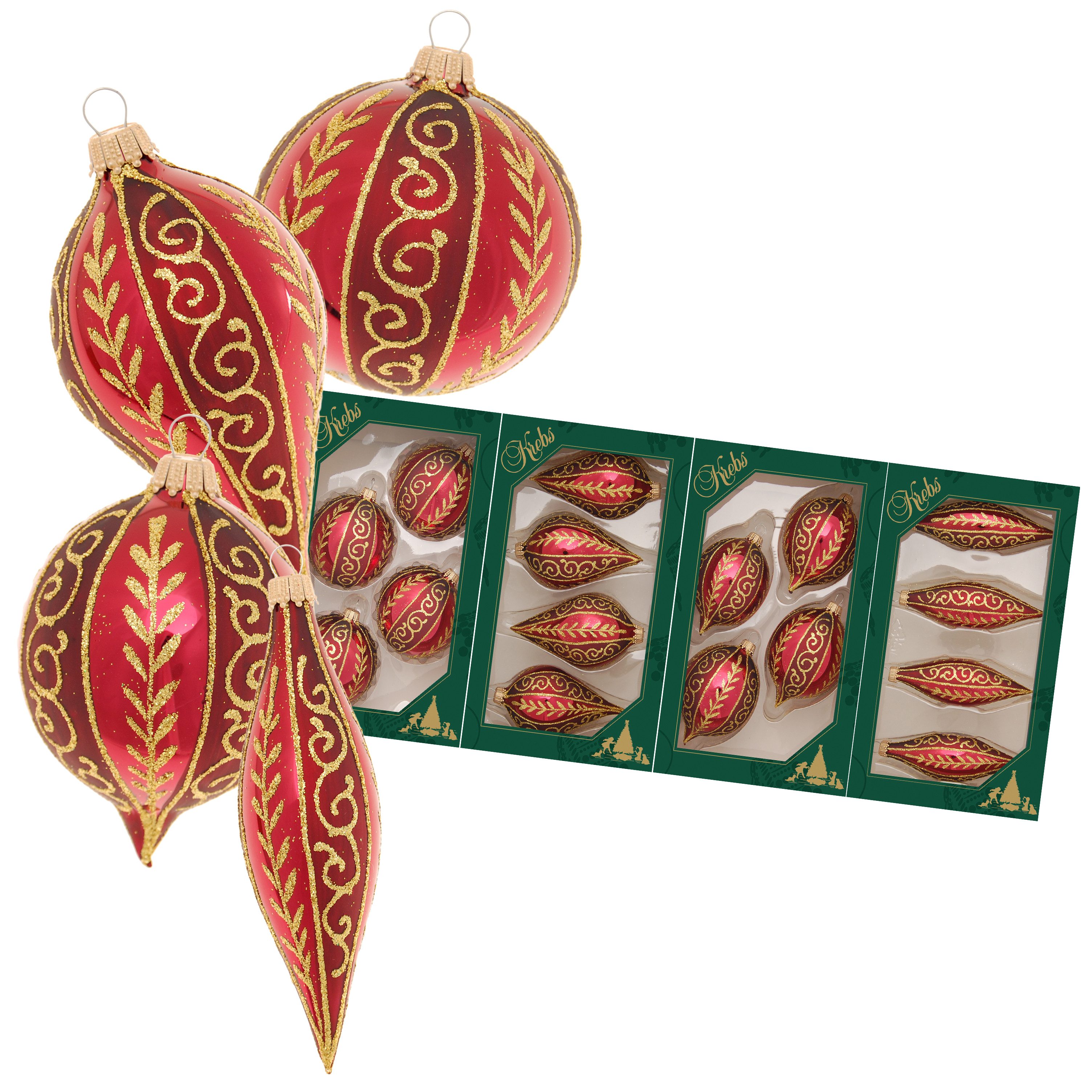 Diese bis zu 10 cm großen Christbaumkugeln aus hochwertigem Glas sind mehr als nur klassische Deko. Mit viel Liebe zum Detail wurden sie in kunstvollen Formen und einzigartigen Designs gestaltet - perfekt, um jedem Baum eine ganz besondere Note zu verleihen. Das Set umfasst 4 Boxen mit jeweils 4 verschiedenen Formen - insgesamt 16 Unikate für ein stilvolles, harmonisches Gesamtbild.